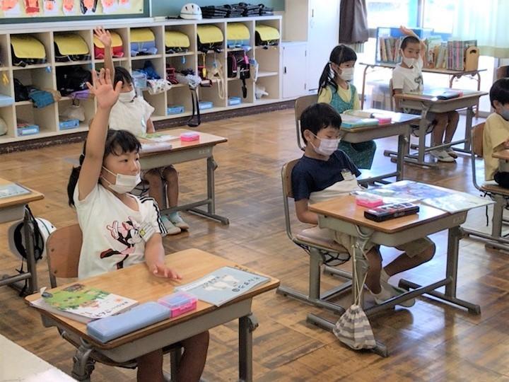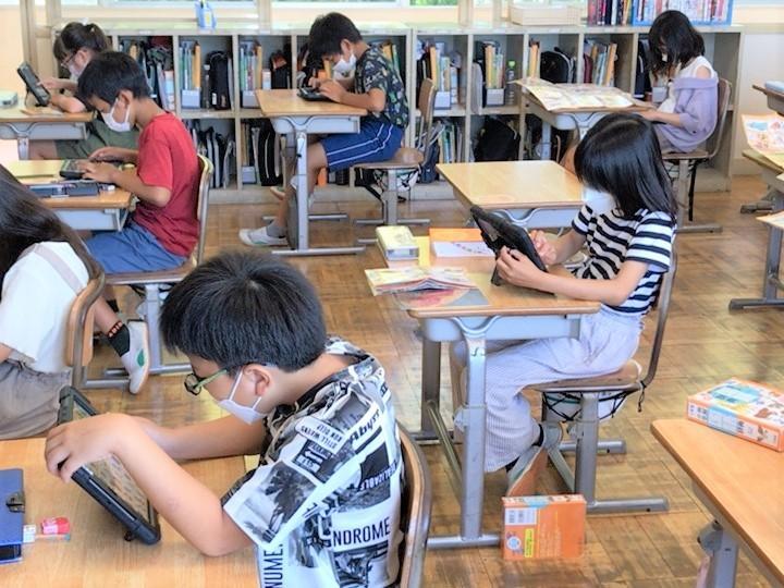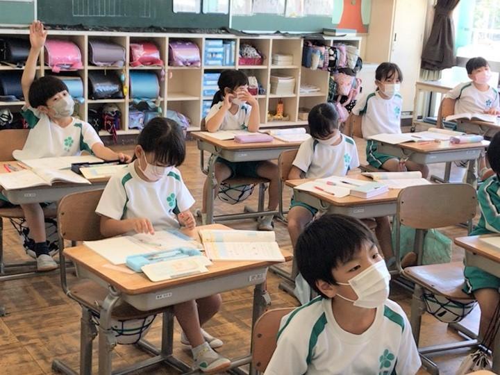 🔴中休み、運動場は活気にあふれていましたが、マスクを外すように指導を重ねています。熱中症「危険」ランクの一歩手前の「厳重警戒」となっています。「危険」となった場合には昨年と同様に校舎内で休み時間を過ごすようにしていきます。