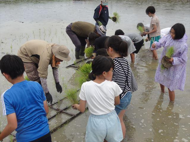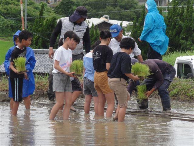 そんな「野生の王国?」を観察した昨日から、今日のお天気がとっても気になっていました。タイトルにあるように、雨の中、「田植え」できるかな~と。幸い、心配していたほどの雨量でもなく、気持ちよく子どもたちは、田んぼの土に親しみ?つつ、地域の方々に言葉をかけてもらいながら楽しい体験をすることができました。昨日配信しました「5年生保護者の皆様へ」、お休みのところご確認いただきありがとうございました。