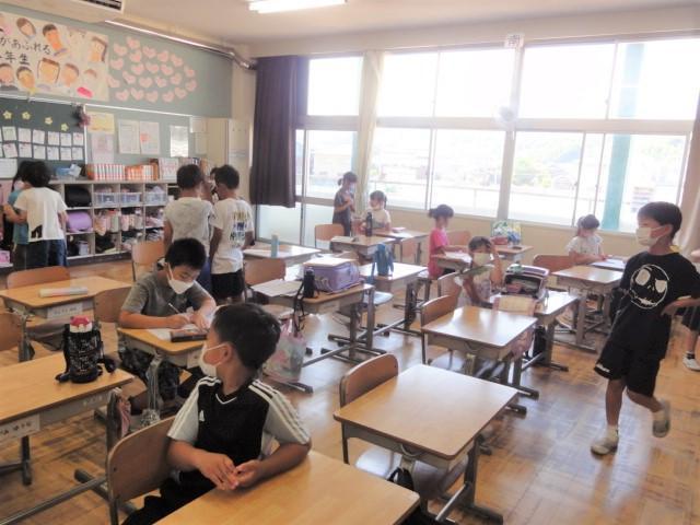 透き通るような青空とキラッキラの太陽が眩しい朝を迎えました。日射しの強さは感じるものの、湿度が低めで少しカラッとしていました。その中を登校してくる子どもたち、そして到着後の教室などなどを見てきました。
