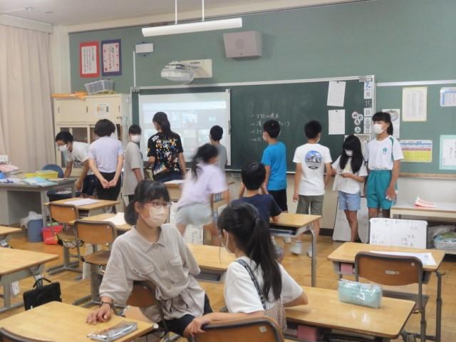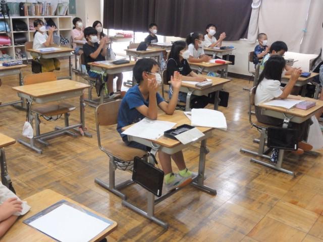 まとわりつく湿気、サウナを思い起こさせるような感覚の朝を迎えました。諸事情により本日の全校児童集会はタイトルにもあるように「オンライン」にて各教室等から発表を実施しました。1F~3F、そして2F、はたまた1Fと短時間での昇り降りとなり酸欠ヘコヘコと、湿度のWパンチでノックダウンしそうでした。