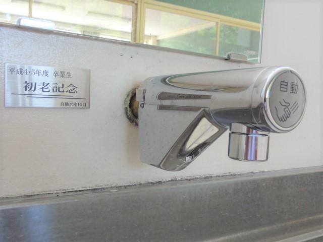 そして・・・、すでにお気づきの保護者の皆様もおられると思いますが、『自動水栓』。平成4、5年度卒業生の方々(昨年度・今年度に初老を迎えられています。)からいただいた「ご厚志」と他の予算とを合わせる形で、校内設置水栓の約半数を『自動水栓』への取替を計画し、本日すべての取替作業を完了しました。
