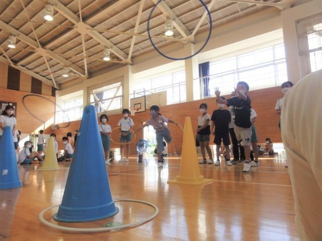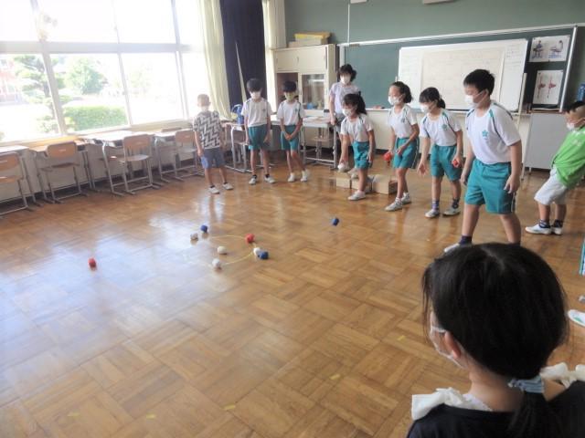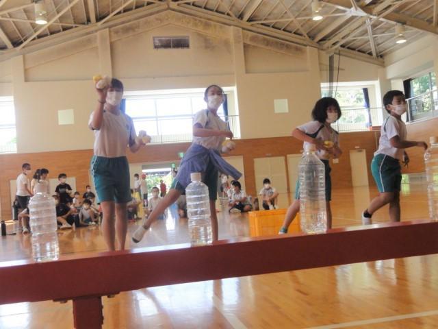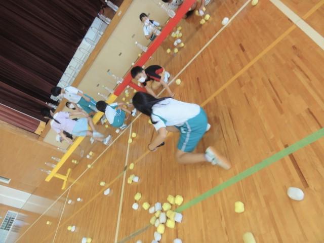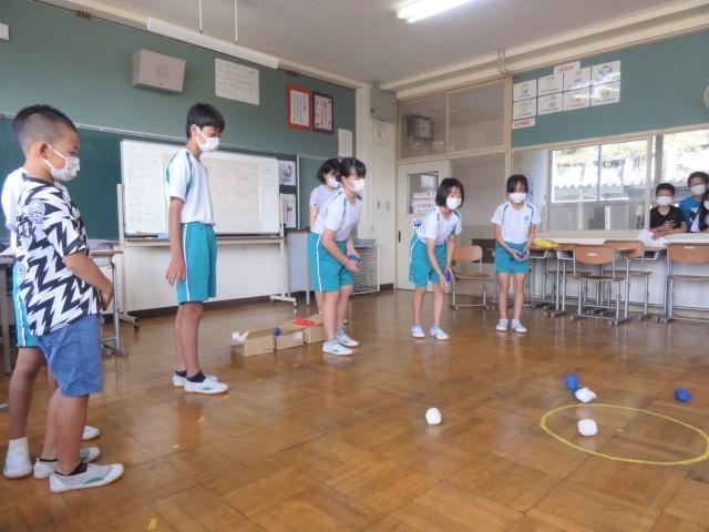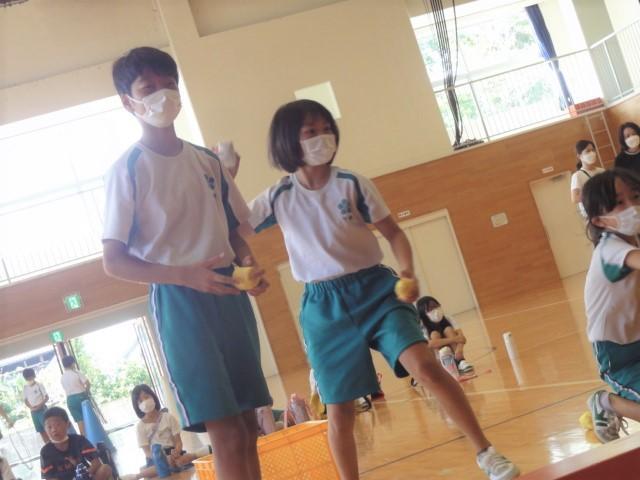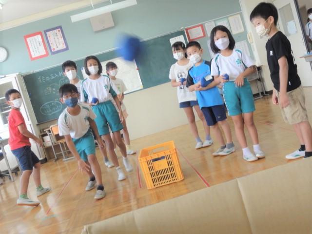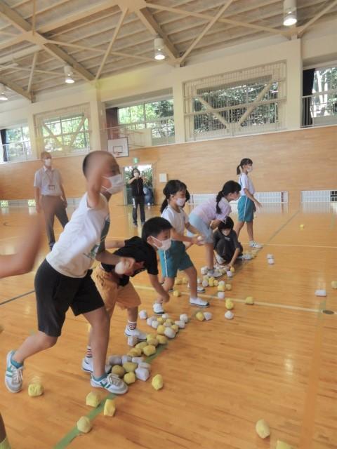 一学期、昨年度に引き続き体育委員会が企画して実施を予定していた『ミニ投げ運動会』❗。感染症の急拡大もあり本日の実施となりました。とっても良かったこと!昨年度の企画内容とは〝同じところがない!〟ということがミソ、よ~っく考えてくれました。あらゆるところでみられる「前例踏襲」、子どもたちの発想と創意・工夫を今年も楽しませてもらいました。参加した、全校生も最初はとまどいの表情を見せていましたが、4つの〝投げ〟アクティビティーで笑顔いっっぱいになっていきました。