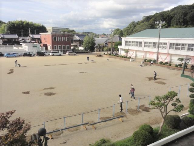 🔵保護者有志による愛校作業ありがとうございました。「曇りない窓ガラス」、「整地された運動場」を見つめている、子どもをみかけました。そして、愛校作業当日には同じ窓ガラス、運動場を見つめた保護者の皆様、体育会で子どもたちの輝きが増すことを期待するばかりです。