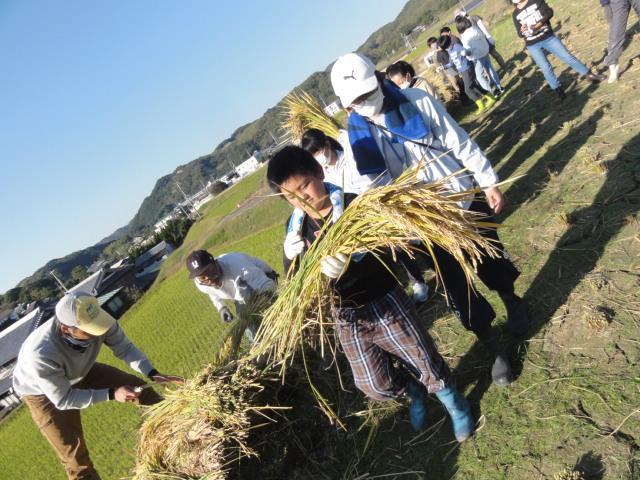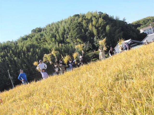 そして、タイトル。朝一の様子、中休み、そして5年生の稲刈りの様子をお伝えします。