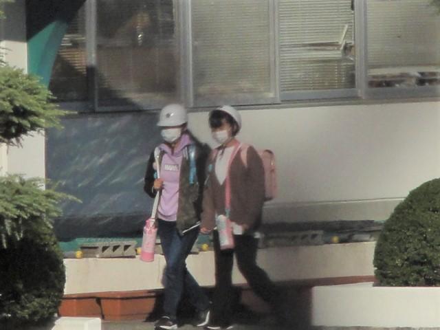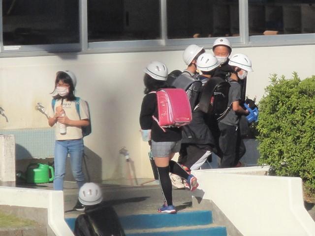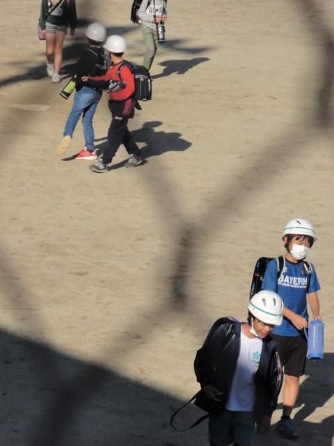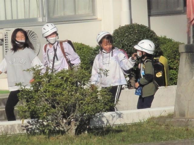 登校時だけではなく、時には下校時の写真も!と、撮る機会を探していました。今日は5時間目までで全校生が下校となる日。〝シメシメ〟と、💡が点灯しました。そして、撮影ポイントを〝どこから?〟でちょっと悩みました。
