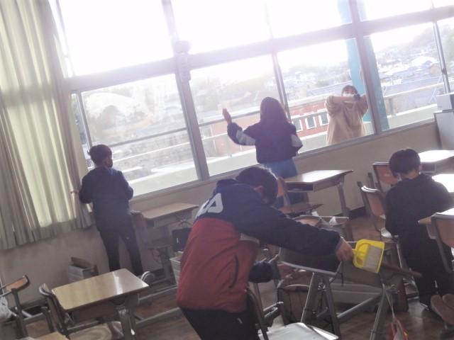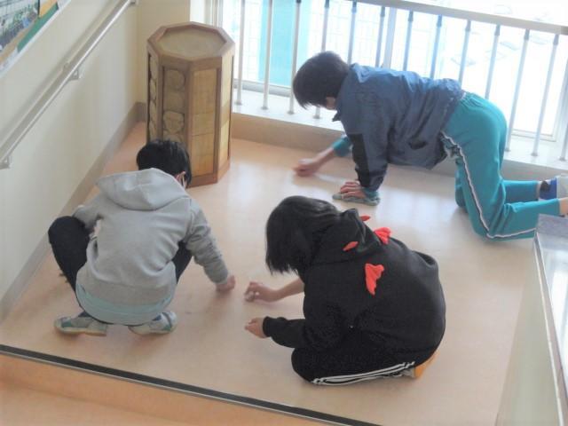 そして、今日の5時間目は大掃除、いつもは一か所で集中して〝健気?(笑)〟に掃除をしているのですが、今日は子どもたちから「小さな幸せ」を受け取って、保護者の皆様にも〝おすそ分け〟しないと、と思い、掃除もしながら校舎を3回ほど上から下までグルグルしました。その様子をお伝えします。
