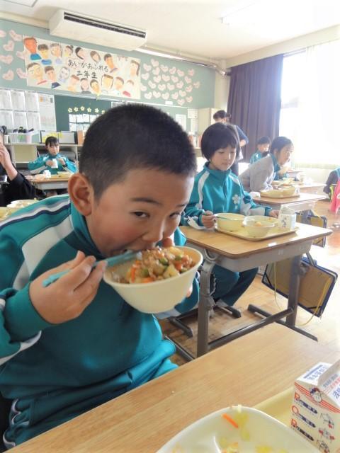 今日は1年生、6年生以外の教室に、ほんのわずかですが〝長居〟して、その〝食べっぷり〟を観察(笑)してきましたので、ニコニコしながら写真を眺めてください。