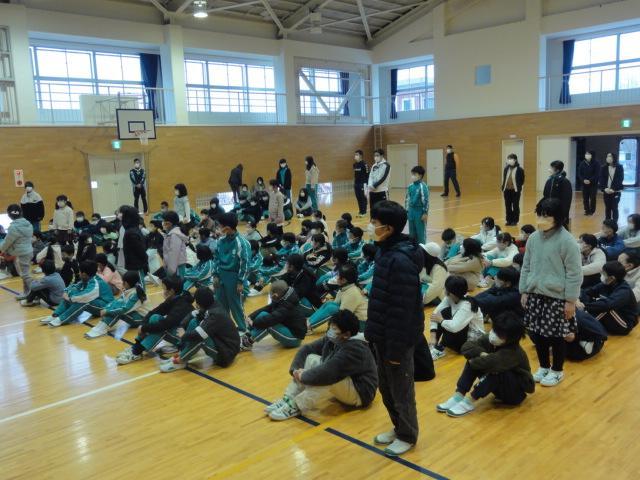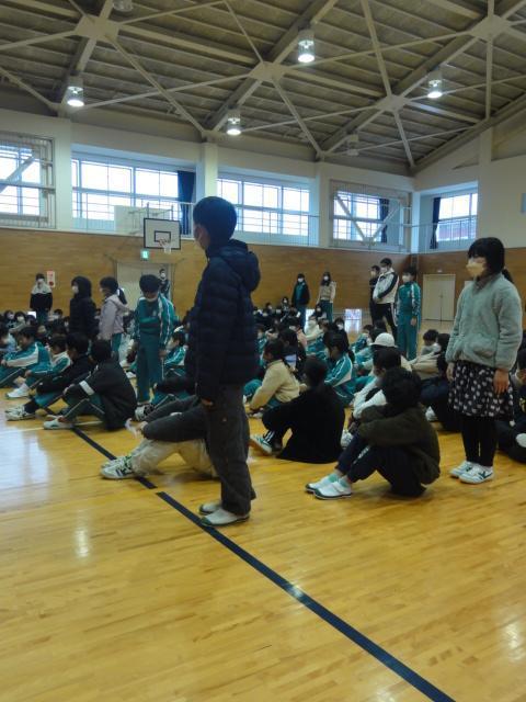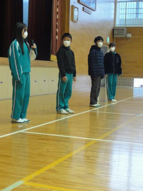 児童朝会では校内書初展に関わる表彰や、陸上競技に係る目標記録突破者に贈れらる表彰を6年生2名に授与しました。(授与の写真はありません🙇)、すべてではありませんが、朝会のようすをお伝えします。