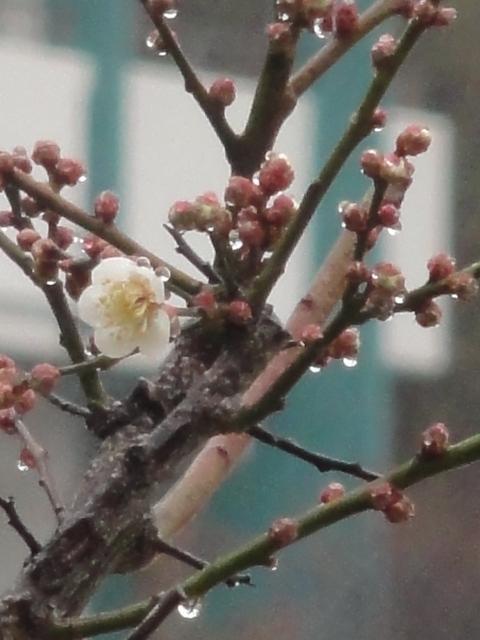 昨日までの暖かさが一転するような「春時雨」、そして『春』といえば---。タイトルの「紅白」には学校の最も大切な行事が〝もうすぐ❗〟という意味を重ねました。もの悲しさが募るとともに、清々しい旅立ちの季節、卒業式では体育館の2Fのギャラリーは『紅白』で彩られるのです。さらに!、鮎原小学校の校章!「梅鉢」の『梅』、先月来「紅梅」をお伝えしていましたが、この土日の暖かさで「白梅」も開花し始めたようです。雨の中、チラチラっと数えると今日は〝7輪〟ほどが咲いていました。ようやく『紅白梅』、ということで卒業式の『紅白』と合わせ技で、〝春しぐれ 季節巡りて 紅白か〟としました。