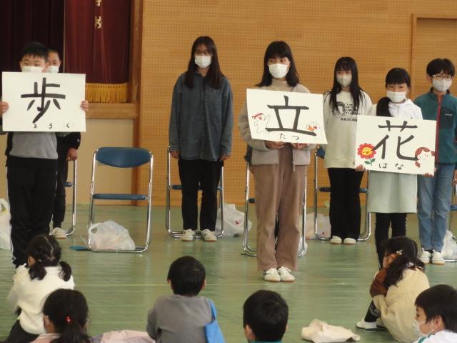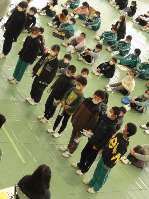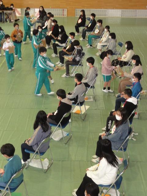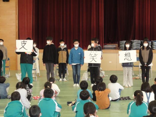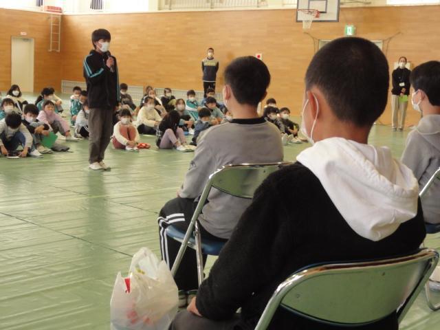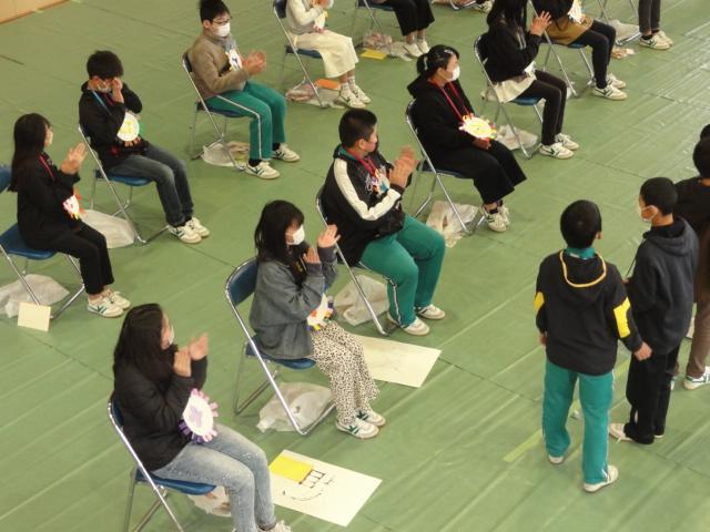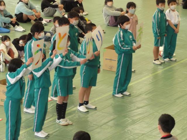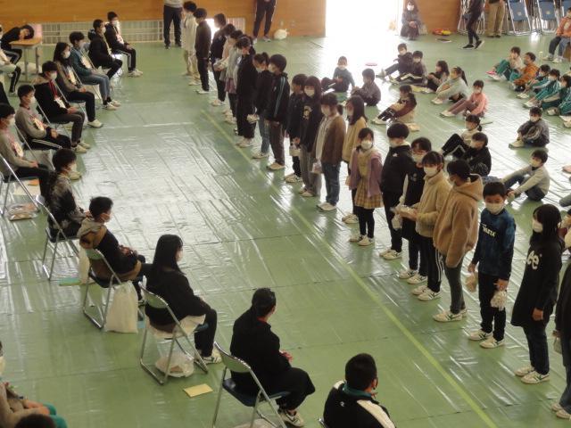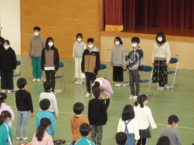 6年生が退場した後に、1年生から5年生に向けて、「ありがとうとお疲れ様」、そして何よりこの会を企画・運営した、2週間後の最上級生に最上級のことばでねぎらいました。