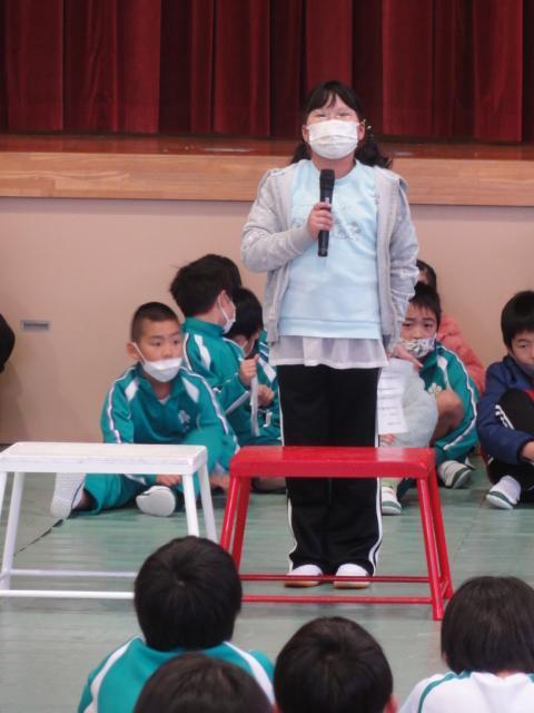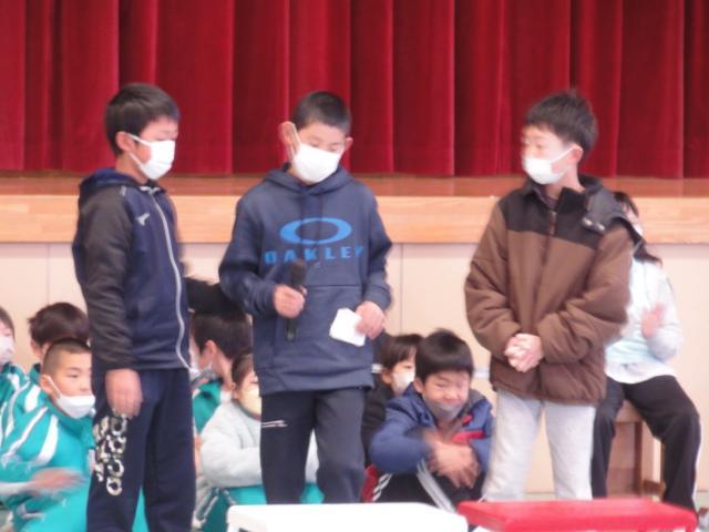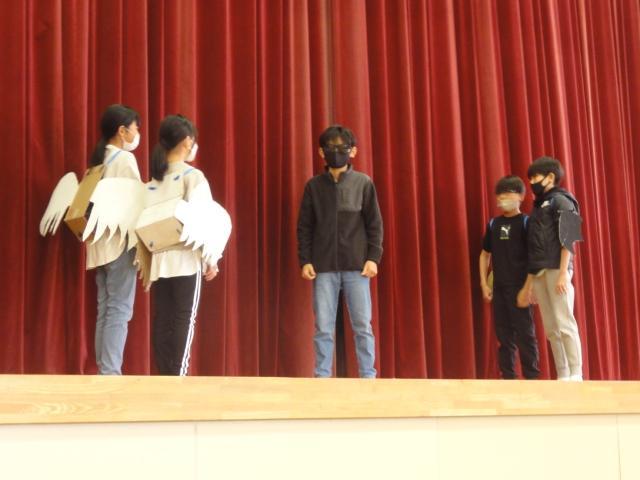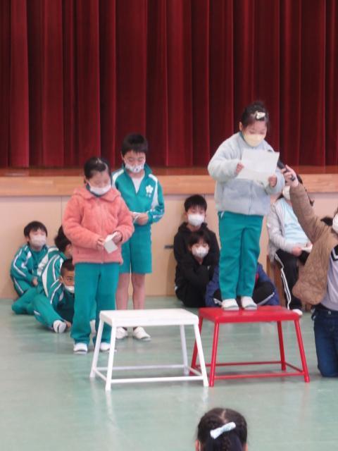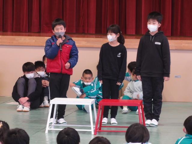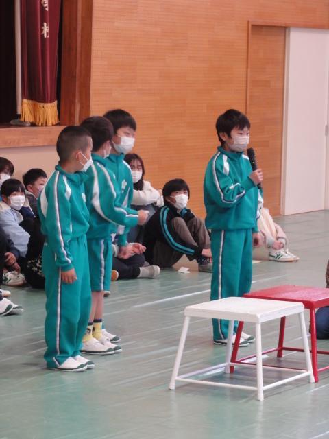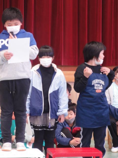 また、毎学期と同様ですが、各学年や委員会から頑張ったことや活動内容などについての発表がありました。そして、最後には〝みんなのおたのしみタイム〟=寸劇が披露されました。内容についてはお子様から聞いてあげてください。