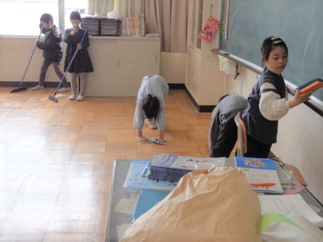 明日は祝日、そして6年生にとっては残すところ2日間となりました。今日は「大掃除」。さまざまな思いが去来する中で、指先に集中する姿が多く見受けられました。使っていたものを後輩に気持ちよく使ってもらうことを念頭に、その健気さに頬緩むとともに、涙腺も・・・、という状況でした。