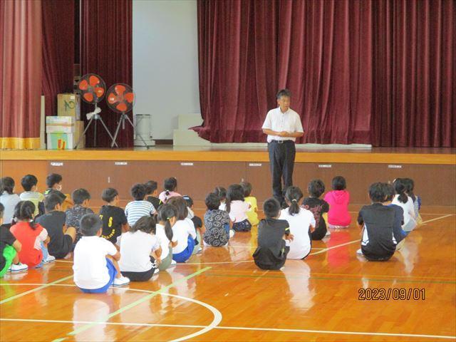 9月1日(金)、始業式を行いました。校長先生からは、夏休みに活躍したスポーツ選手の話があり、どの選手も大きな夢をもって頑張っていたという紹介がありました。夢を実現した選手の中には、挫折や失敗を経験した方もいたそうで、あきらめずに努力した成果が夢の実現につながったというお話がありました。そして、教育実習生の紹介もありました。
