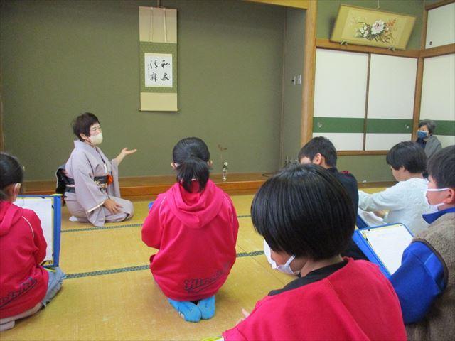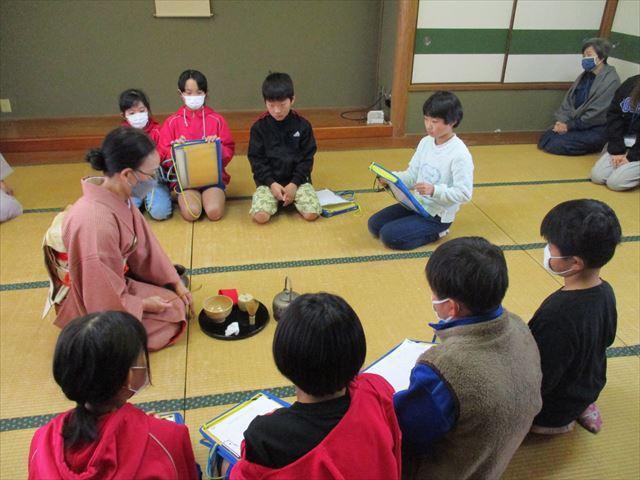 3、4年生は、公民館の和室をお借りして、茶道教室をしていただきました。3年生は、電気が通るものを実験で調べ、タブレットで提出していました。