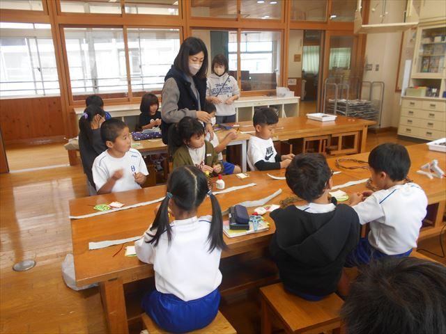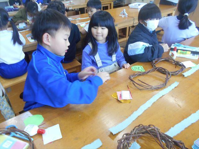 1,2年生は図工室で、お正月のリースづくりに挑戦しました。