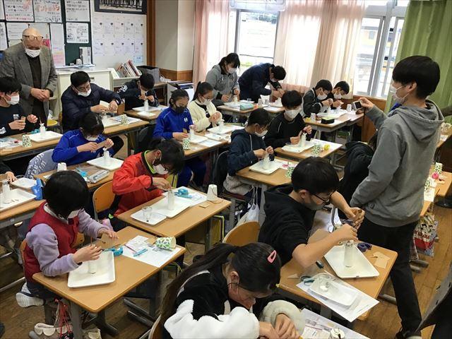 5,6年生が6年生教室に集まり、一人一人電池づくりに取り組みました。
