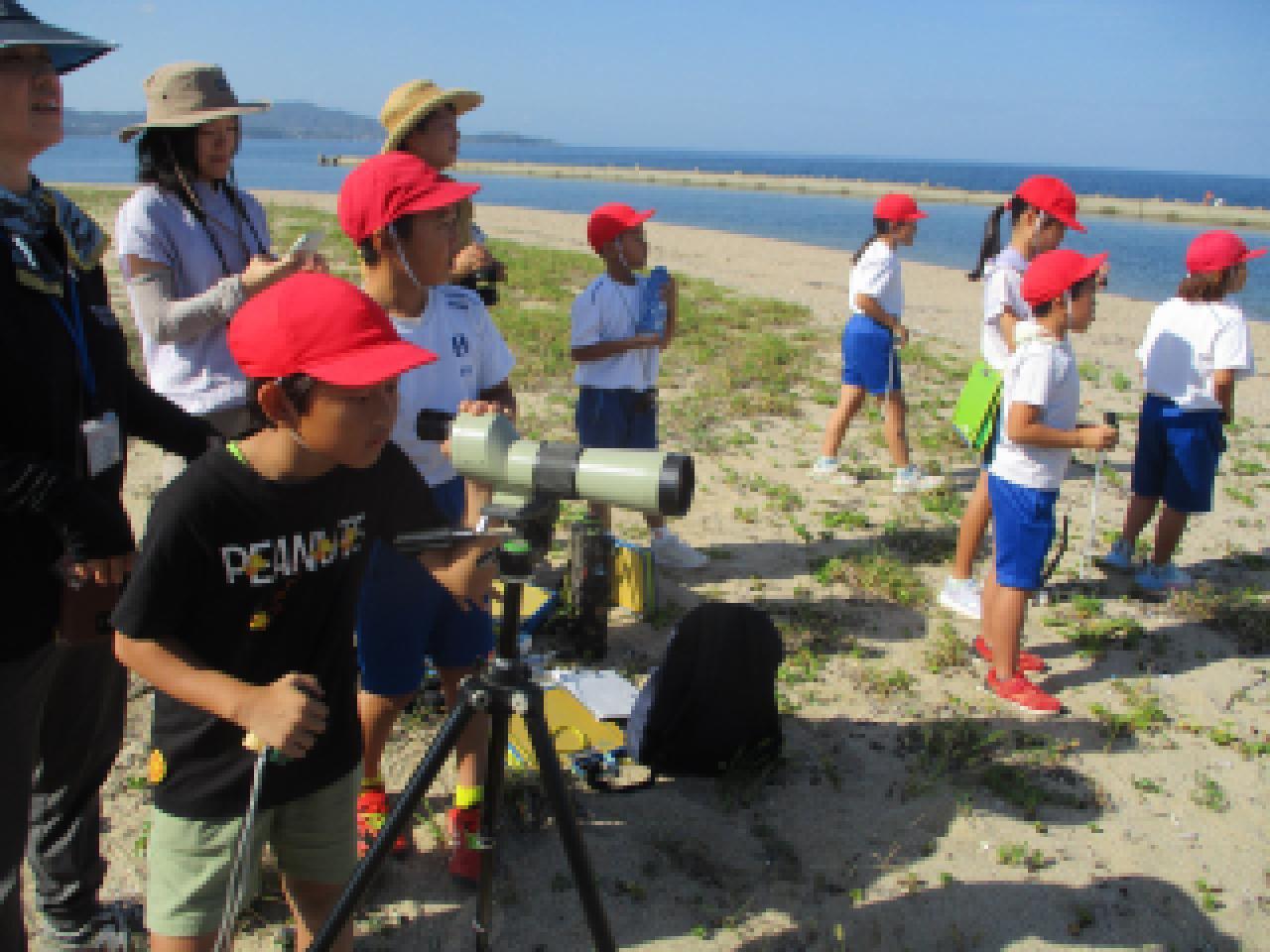 環境体験学習の一環として、3年生が淡路島ちどり隊の協力のもと、五色浜でシロチドリの観察をしました。淡路島ちどり隊は、「チドリが住みやすい環境を整えることで、もともとの淡路島の豊かな砂浜を取り戻す」ことを目的に活動されているグループです。シロチドリは、ここ50年ほどでその数は3分の1にまで激減し、兵庫県において、絶滅の危険性が一番高いレッドデータブックAランクに指定されているそうです。この日は、実際にシロチドリを実際に見ることができ、子どもたちも目を輝かせて観察していました。また、同時に環境保全の大切さも学んだようです。