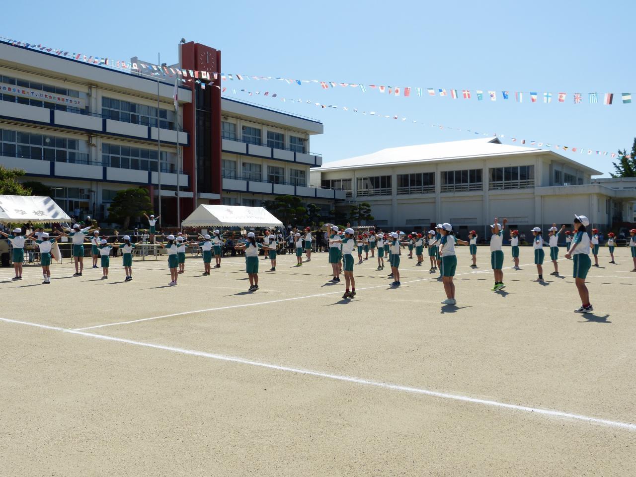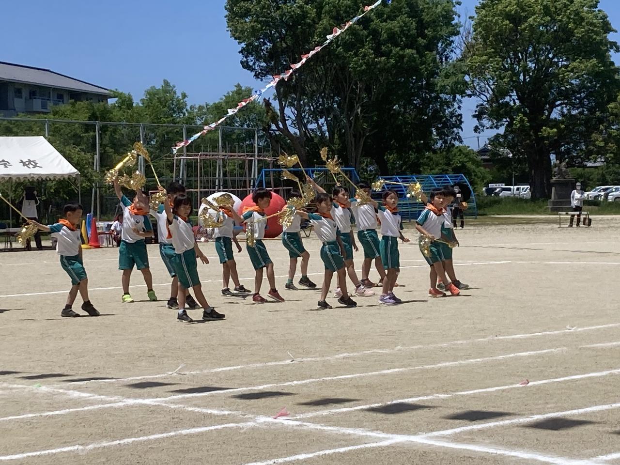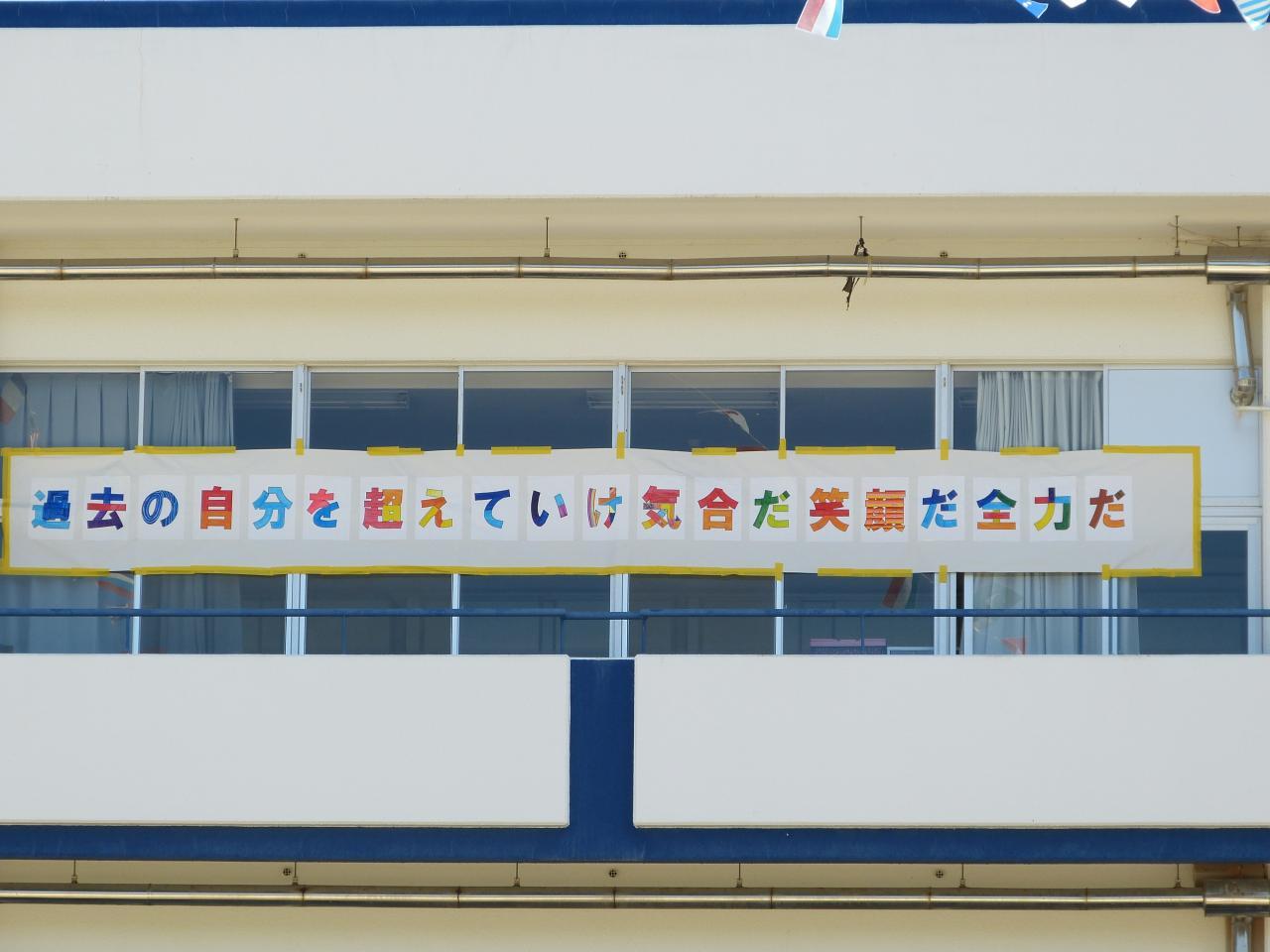 5月25日(土)に、運動会を実施しました。当日は、天候にも恵まれ、子どもたちは元気いっぱいに演技をすることができました。ご家族の方や地域の方々、多くの皆様にご観覧いただく中で、テーマ「過去の自分を越えていけ 気合だ 笑顔だ 全力だ」の通り、力を発揮できました。