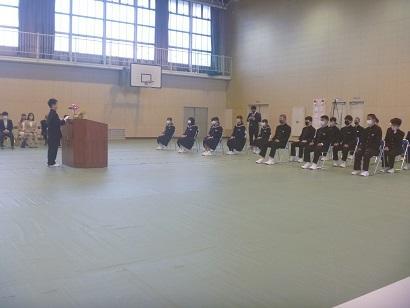 また、在校生歓迎の言葉では、代表生徒から、由良中の良さ、あいさつをしっかりすること、生徒会での取り組み、夢などが述べられ、落ち着きのある立派な中学生の姿を見せてくれました。