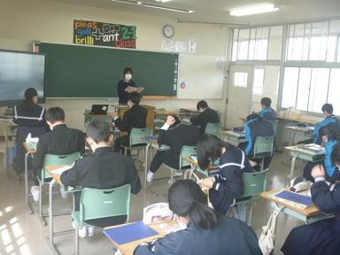 3年生は、社会です。歴史の学習で、「日露戦争とその影響」について学んでいます。担当教師による軽妙洒脱な語りは、生徒を当時の世界情勢へぐいぐい引き込んでいます。