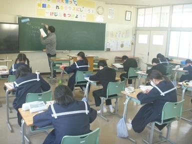 1年生は、数学です。加法と減法を使った計算の学習です。符号に注意して、きちんと計算できるように基本の徹底をしています。