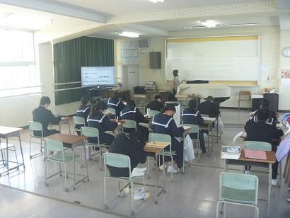 2年生は、家庭です。「栄養素の種類と働き」の学習です。脂質やブドウ糖の働きなどについて、スポーツ飲料の成分をもとに具体的に学んでいます。