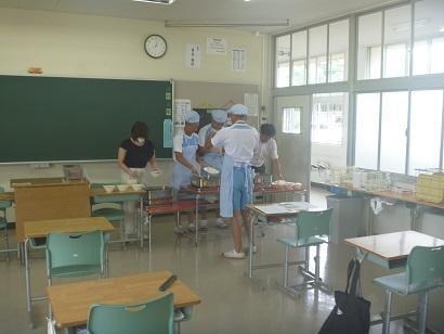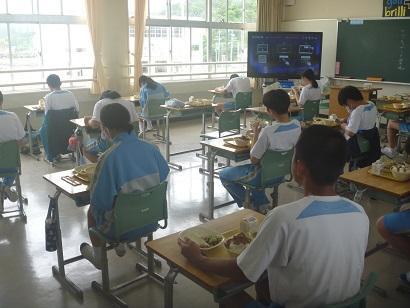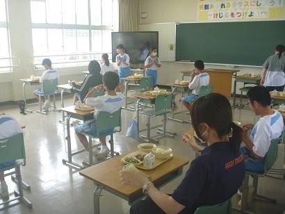 今日は、1学期最後の給食です。毎日の学校生活に彩りを添え、一日の中で「至福の時間」となる給食です。写真は、各学年の配膳するところから食事までの一部始終です。まず、最初に給食センターから届いたコンテナから、食器や食缶を取り出します。そして、センターの方へきちんと「いただきます。」のあいさつをします。教室へ運んだ後は、どの学年も手際よく用意して配膳し、楽しくいただいていました。