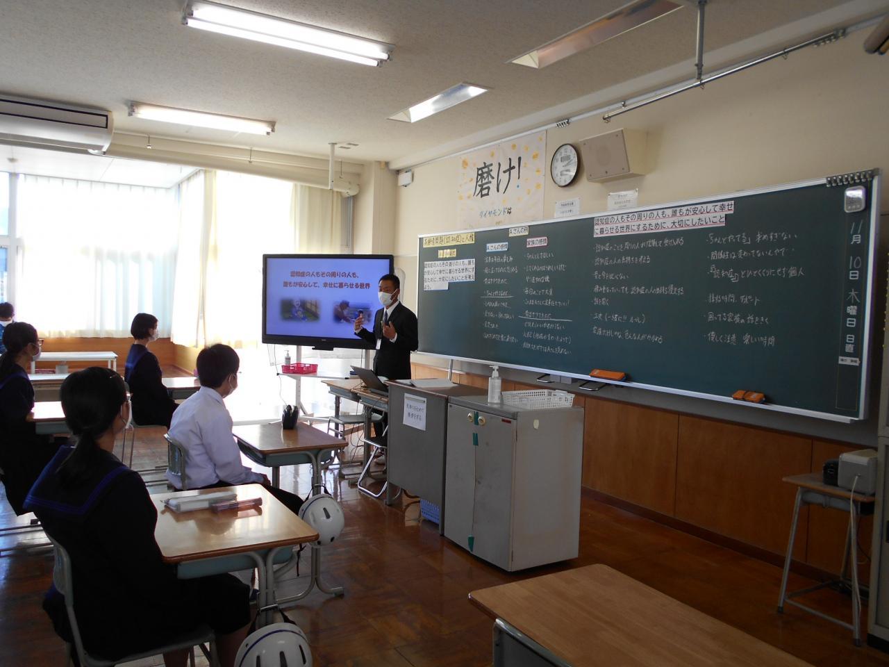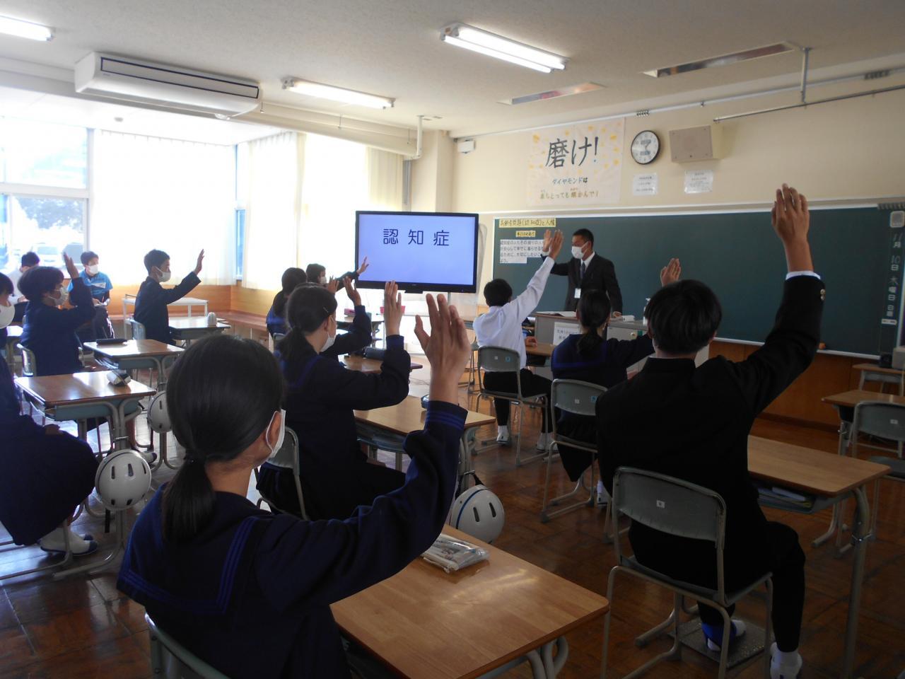 2年生が「洲本市中学校人権教育研究授業発表会」で「高齢者問題」について学びました。市内中学校の人権担当者も授業参観に来られました。2年生の活発な意見が出、活気のある授業となりました。