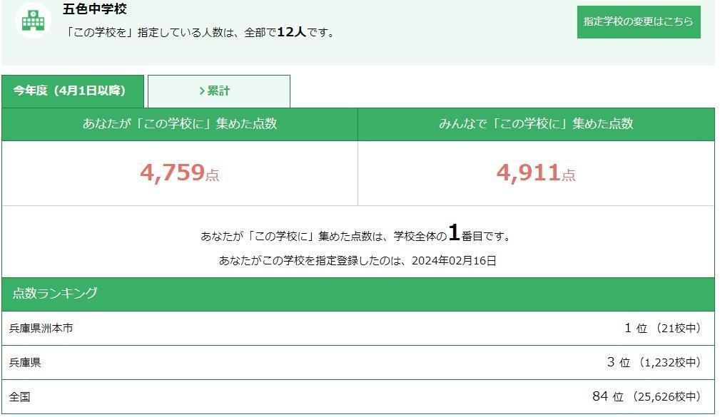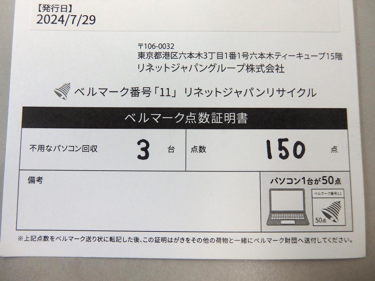 また、ベルマーク運動にもご協力いただいています。ウェブベルマークの登録者数が少しずつ増え、4月以降にみんなで集めたウェブベルマークポイントは、8月17日時点で兵庫県で3位にまでなりました。その他、純正の使用済みインクカートリッジをご持参いただいたり、パソコン廃棄にベルマークをご利用いただいたりと、五色中学校に続々と支援が集まっています。ありがとうございます。