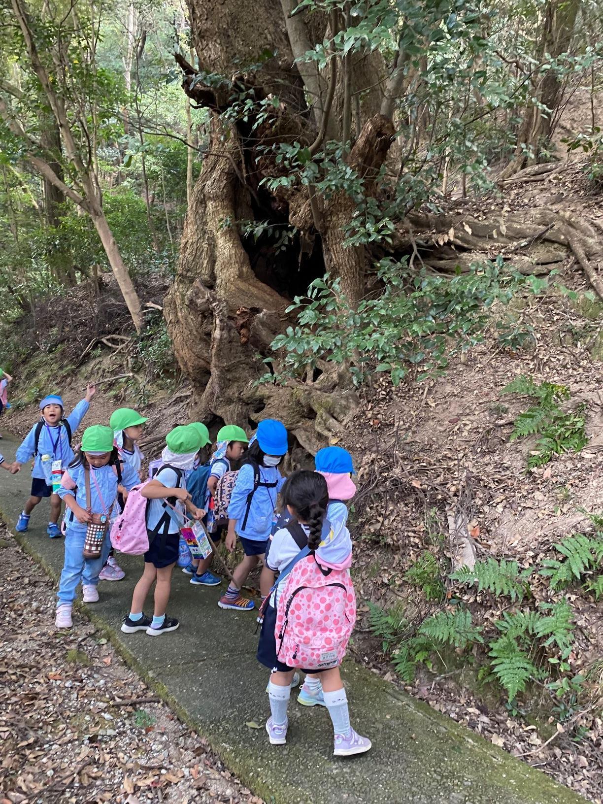 「きのこ、みつけた〜!」「黄色いはっぱをあつめたよ〜」秋を感じながらの三熊山探検🤩