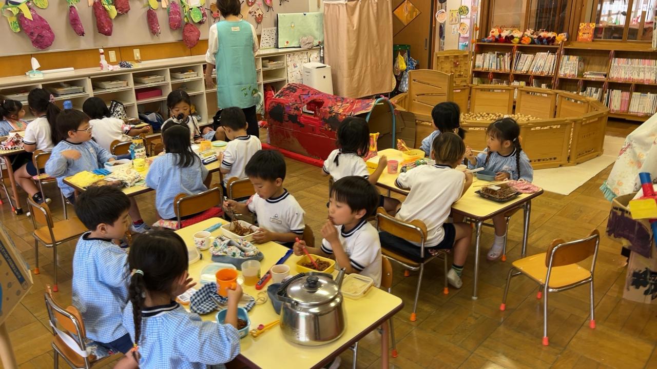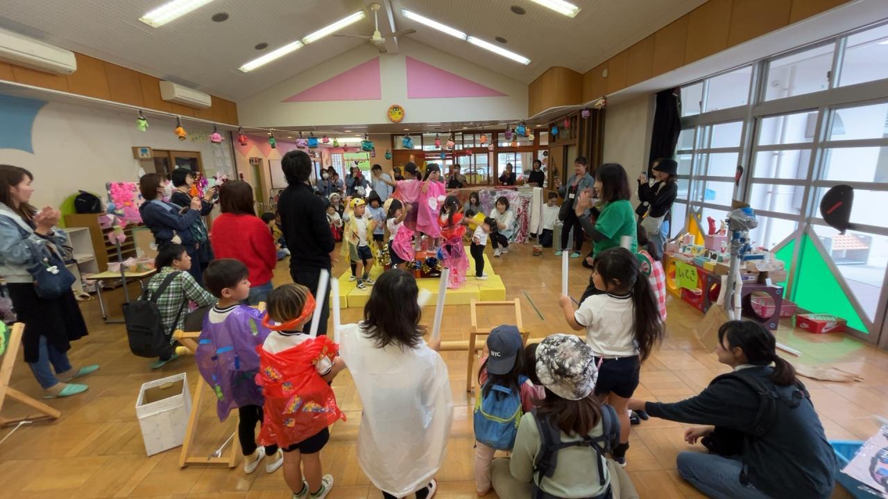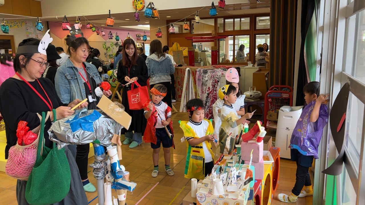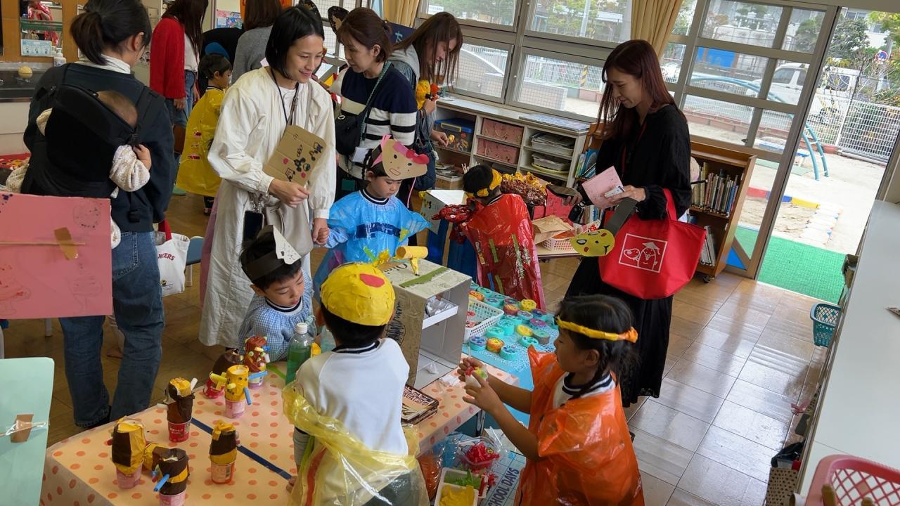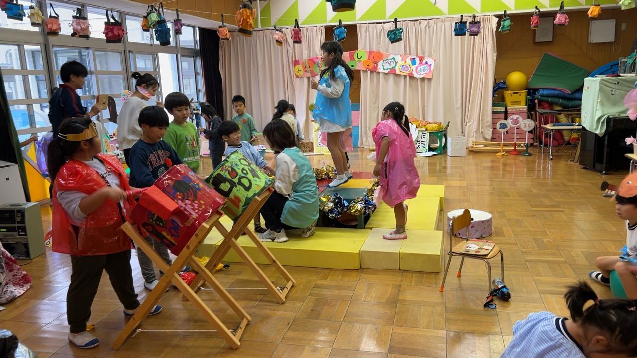 運動会からお祭りの遊びがつながり、園全体でお祭りごっこを楽しんできました🌈神社でお参りやもちつきができたり、まるで本物!?みたいにおいしそうな屋台、かわいい景品がいっぱいのゲームコーナーなど、子ども達のアイデアや工夫がいっぱいの楽しい遊びが盛りだくさん🌟