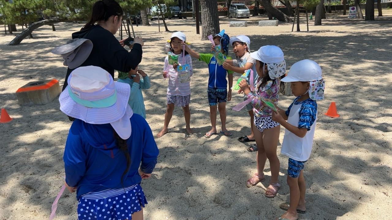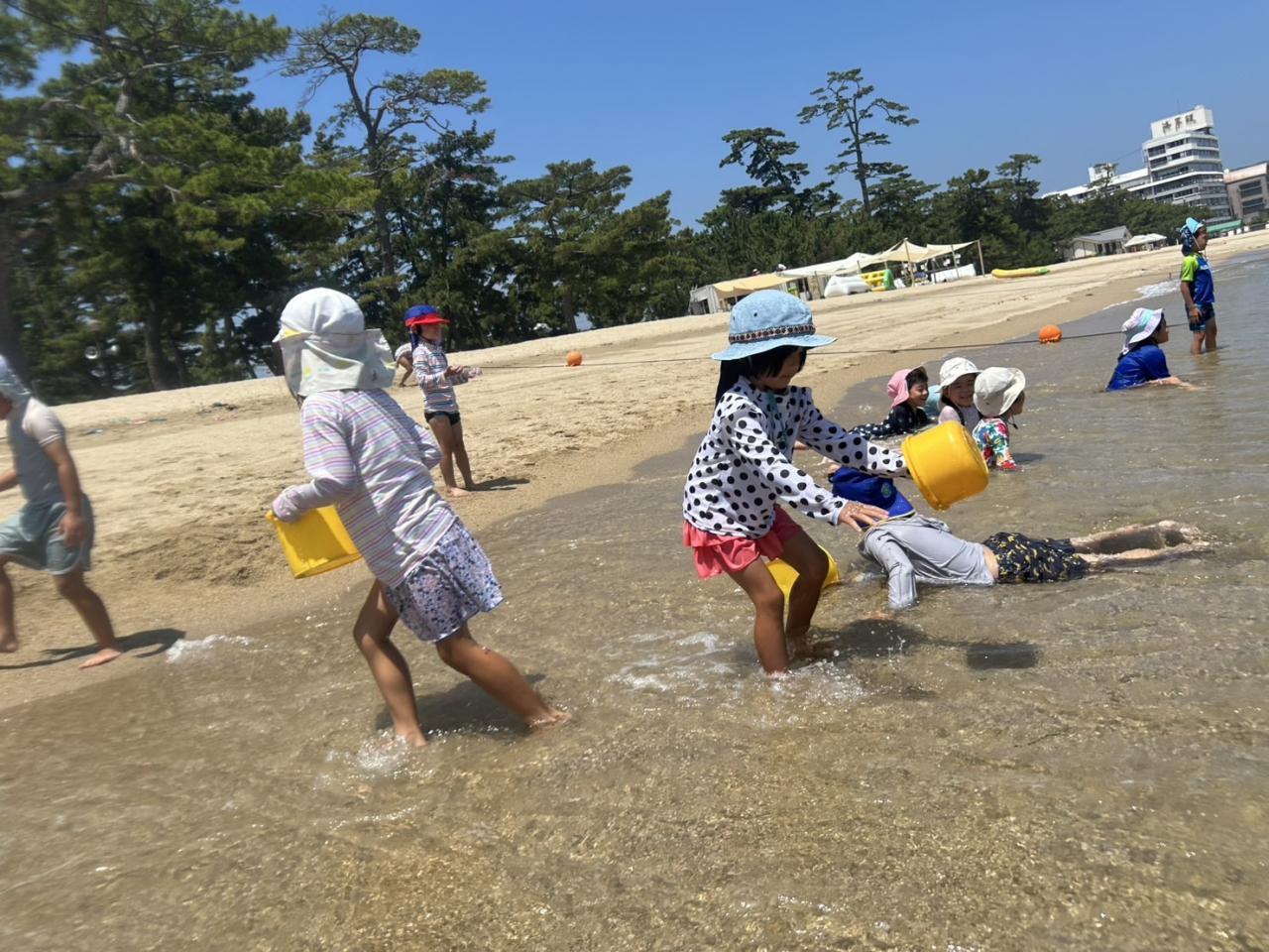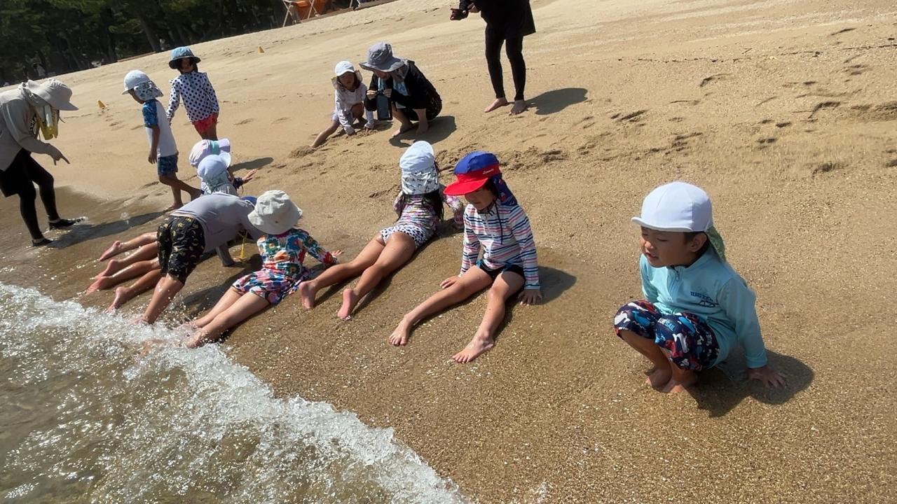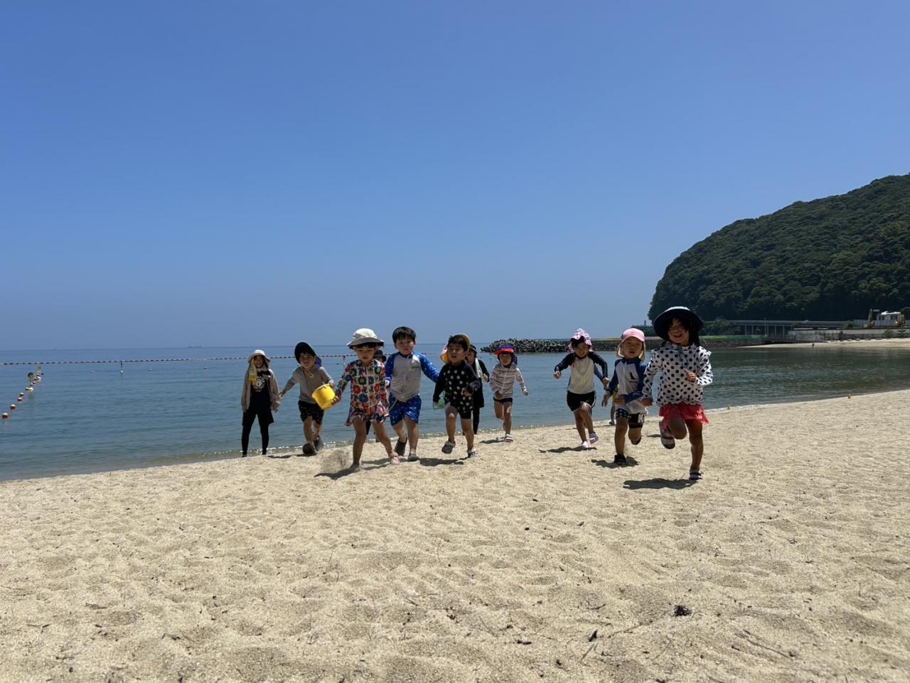 🌊大浜海遊び🌊今日は絶好の海遊び日和でした!足取りも軽く、ルンルンで大浜へ👣最初は「つめた〜い!」と慎重だった子も、最後にはダイナミックに波と遊んだり、赤ちゃんクラゲを見つけたり・・・みんな約束を守って、気持ち良く楽しみました🌈おやつ休憩の後は「宝探しゲーム!」 よ〜いドン!の合図で、砂に埋まっているお宝探しスタート!暑かったけれど、楽しく充実した夏の時間を過ごすことができました🌊