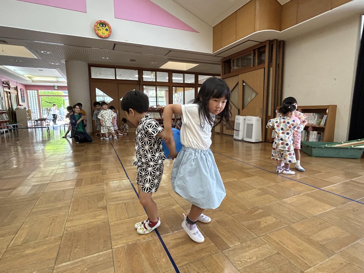 🎋1学期も残りわずかとなりました🌈遊び名人の子どもたちは、来週の夏祭りに向けて、カラオケを歌ったり盆踊りを踊ったりして楽しんでいます。ぞう組のみんなは友だちとアイデアを出し合って、会場準備やお祭りグッズの製作・・・をフルパワーで頑張っています⭐