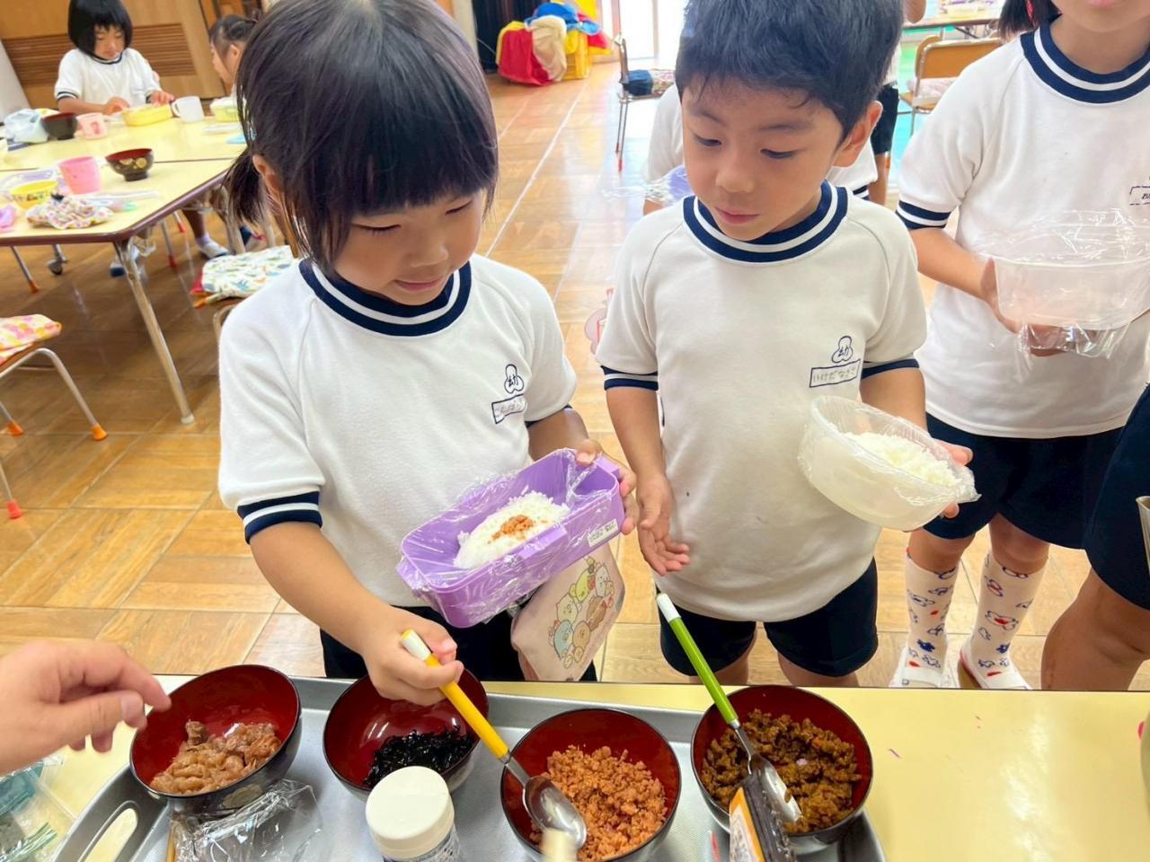10月🌙🍊🍂季節の変わり目で体調管理が難しい時季ですが、🐘🐰子どもたちは、🏃スポーツの秋・🍠実りの秋・🖌芸術の秋・🍚食欲の秋・・・色々な秋を遊びに取り入れながら、毎日元気に🦗秋を満喫しています😃✌園庭では、秋の収穫をしたり運動会の余韻を楽しんだりしています。保育室では来月の🌈オープンデーの準備が着々と進んでいます💪「すもと万博」をテーマに、世界の本や図鑑を見て、広い世界を想像しながら製作や準備を楽しんでいます😄活動を通して、自分の思いを伝えたり友達と相談したりする機会も増え、クラス全体の団結力が高まってきているのを感じる今日この頃です🥰オープンデー、お楽しみに〜✨