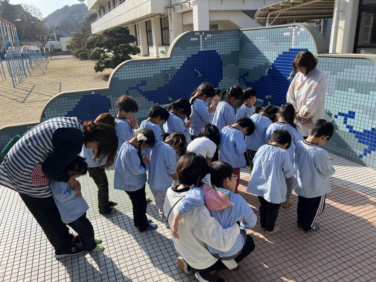 ☆1.17集会☆阪神淡路大震災から31年が経ちました。幼稚園でも、本日、避難訓練をしました。集会では、震災の教訓を伝え、犠牲者追悼の黙祷をしたり防災の知識を深めるDVDを見たりしました。災害は、いつどこで起こるかわかりません。日頃の備えの重要性や命の大切さを実感する1日となりました。お子さまと今日の話をしながら、ご家族でも避難の仕方など、話し合ってみてくださいね。