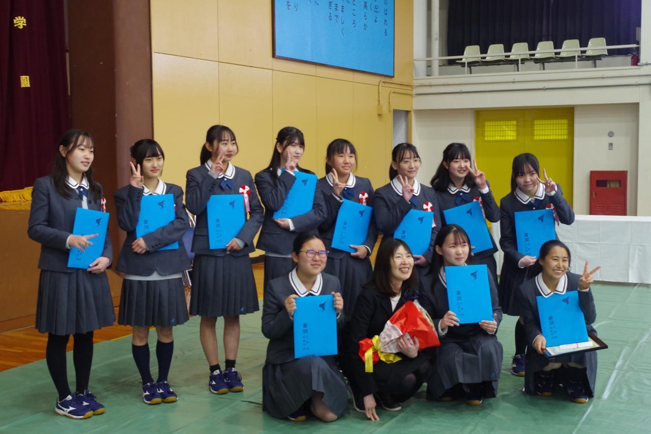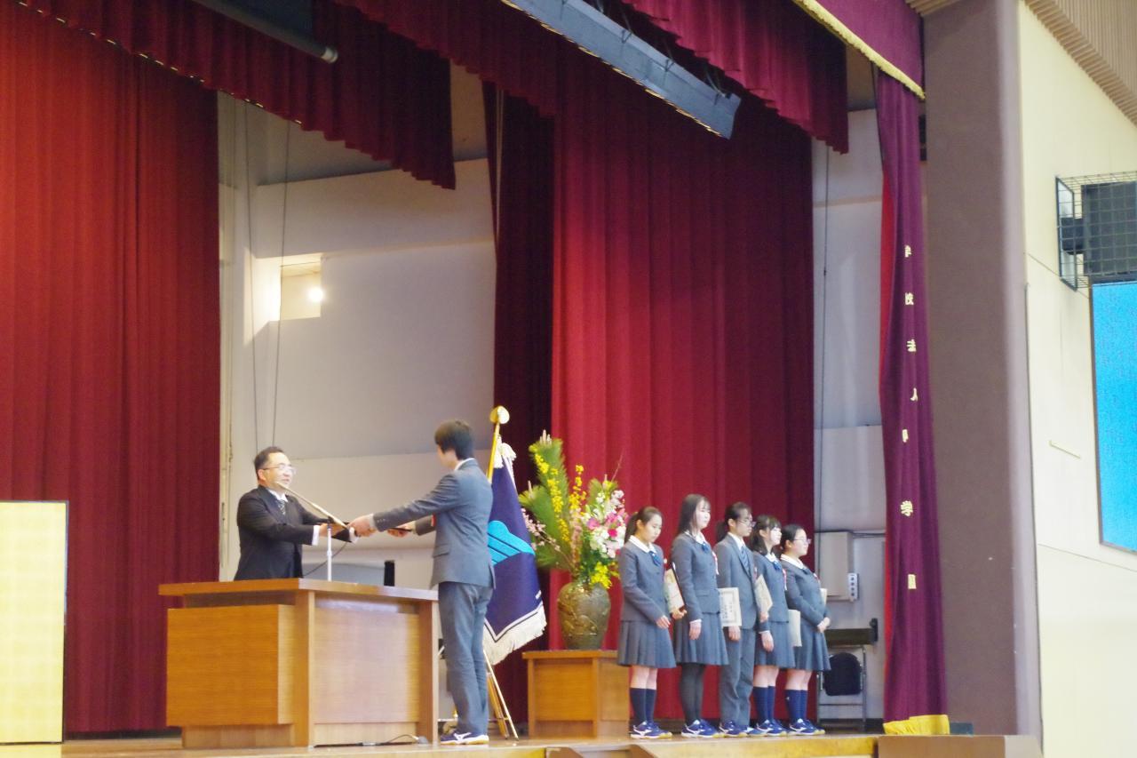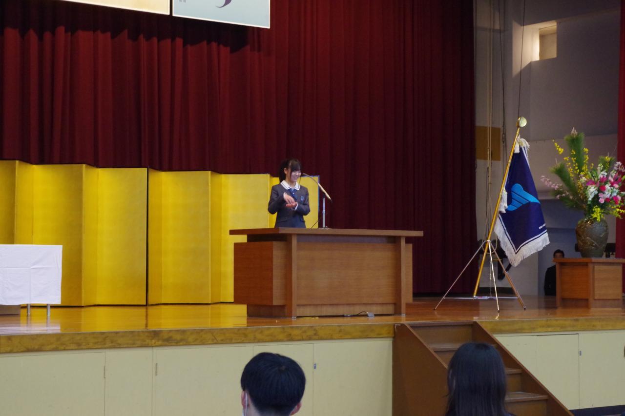 中学3年間の集大成として中3生が1人ずつ舞台に上がり、後輩や保護者の方の前で自分の想いを卒業スピーチとして発表しました。クラブ活動で努力の大切さや頑張りが報われた喜びを語る生徒もいれば、学習面で苦労しながらも乗り越えた経験について話す生徒、さらには自分が興味を持っている「手話」や「プログラミング」について発表する生徒もいて、一人ひとりが自分のテーマで堂々と発表できたと思います。