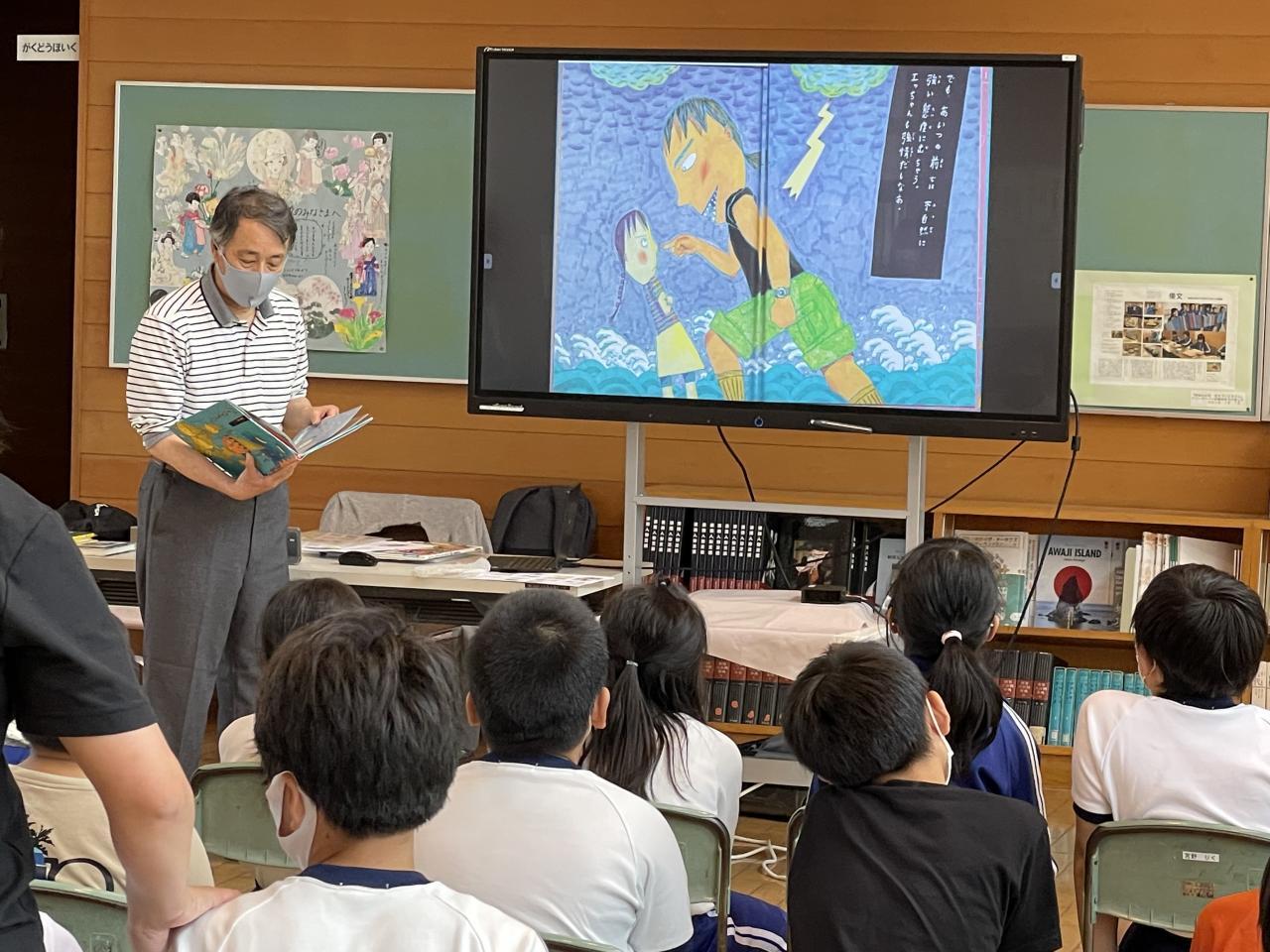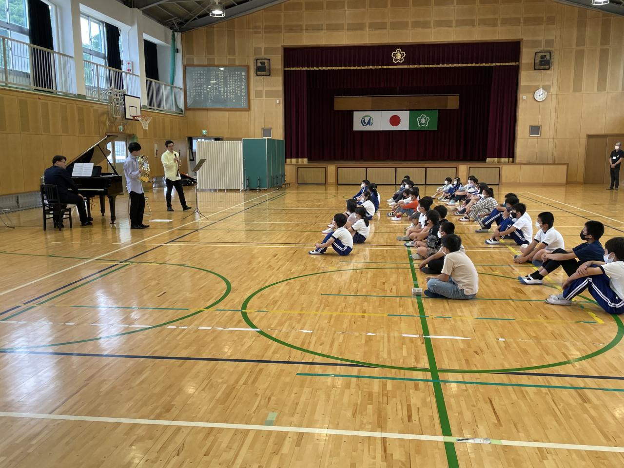 本日、絵本の読み聞かせ講座(1年生除く)パート2を、多賀一郎先生を講師に迎え実施しました。読書の効果について「本を読むと賢くなる」「本を読むと楽しくなる」2点を示されました。この機会にぜひご家庭において読書そして「絵本」の読み聞かせにチャレンジしてください。また本日全校生を対象に「音の根」さんをお迎えして主に管楽器の演奏会を実施しました。普段あまり耳にしないクラシック中心でしたが、子どもたちはプロの演奏に聞き入ってました。サプライズとして「校歌」を演奏していただきいつも聞いている校歌と一味ちがうクラシック調の美しい音色を楽しみました。
