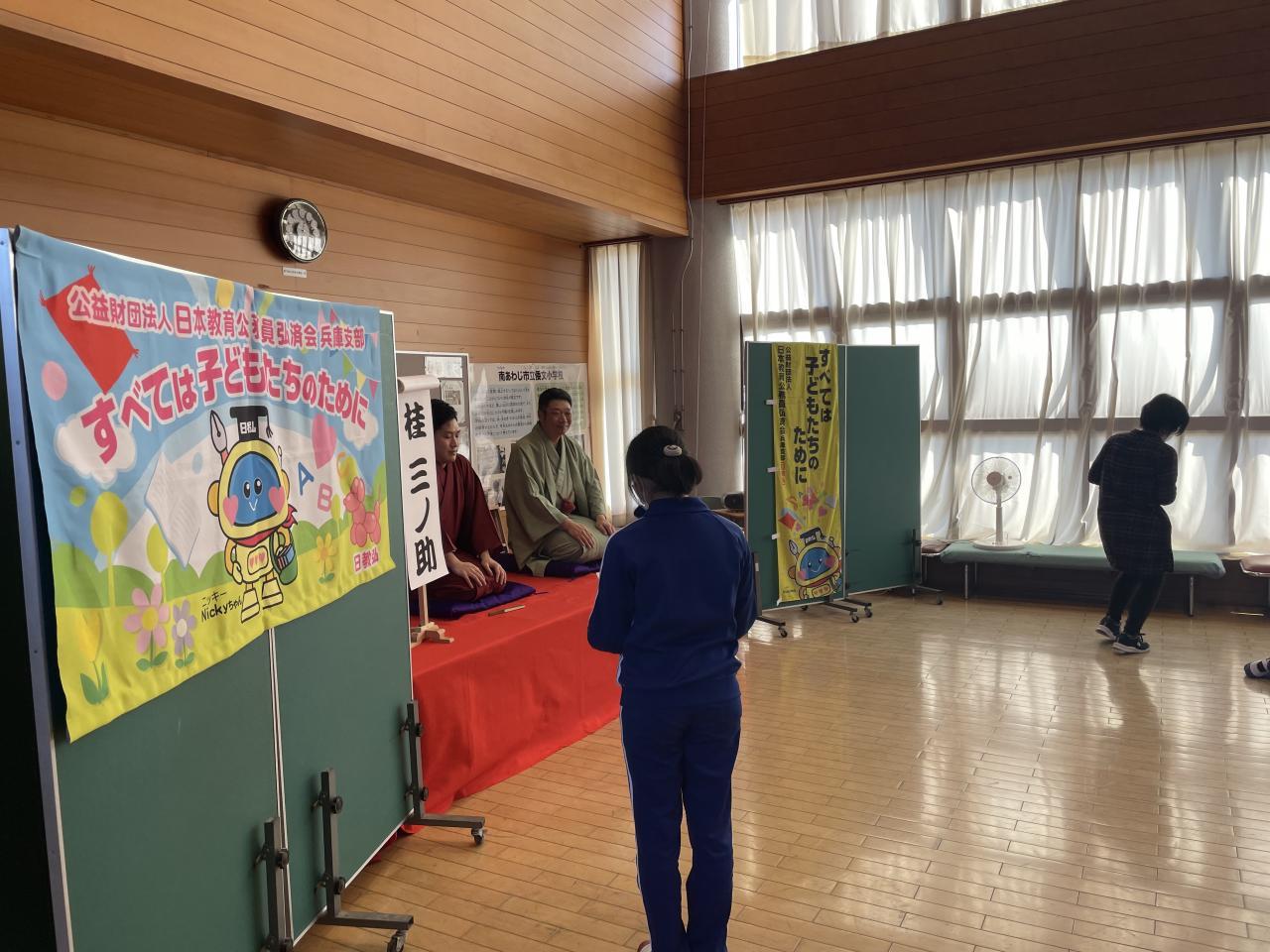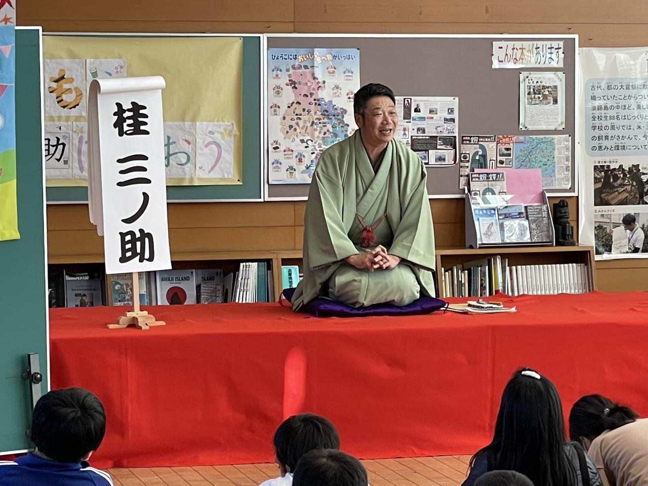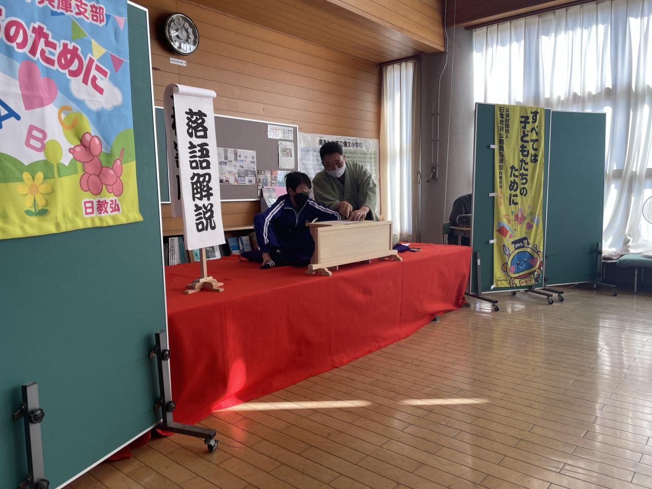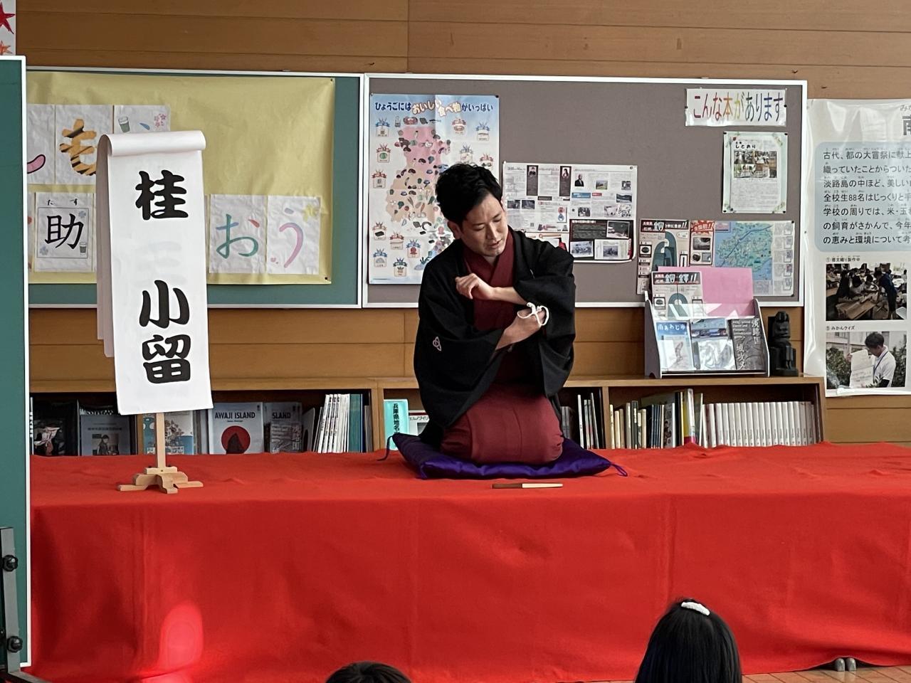 昨日桂三之助(かつらさんのすけ)さん、桂小留(かつらちろる)さんをお招きして、題して倭文寄席として落語鑑賞会を実施しました。落語は江戸時代から続く伝統芸能の一つとして現代でもテレビや寄席等で数多くの落語家が活躍されています。昨日は「落語」の歴史や落語の魅力について、話芸や扇子、手ぬぐいであらゆる物を想像させていく「おもしろさ、奥深さ」などを直接体験できました。またワークショップでは、児童を代表して6年生2名が高座に上がり落語に挑戦しました。とても落語のもつ話芸等楽しい時間を過ごすことが出来ました。