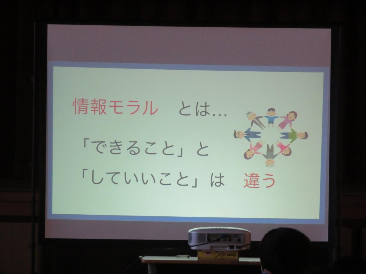 12月20日(火)NIT情報技術推進ネットワーク株式会社より嶋田亜紀さんを講師に迎え、情報モラルについての学習を全校生で行いました。最近は子どもたちでも、スマホやタブレット・ゲーム機を気軽に使える環境があり、上手につきあっていく方法を学ぶことが大切になってきました。今回は、日頃使っているアプリにはそれぞれどんな性質があるのか、使うときにはどんなことに気を付けなければならないかを分かりやすく教えてもらいました。本日、パンフレットを持ち帰っています。ぜひご家庭でも、スマホやタブレット・ゲームについて話をする機会をもっていただけるとありがたいです。