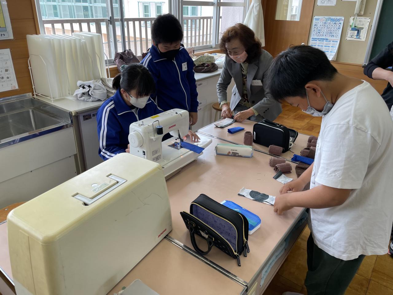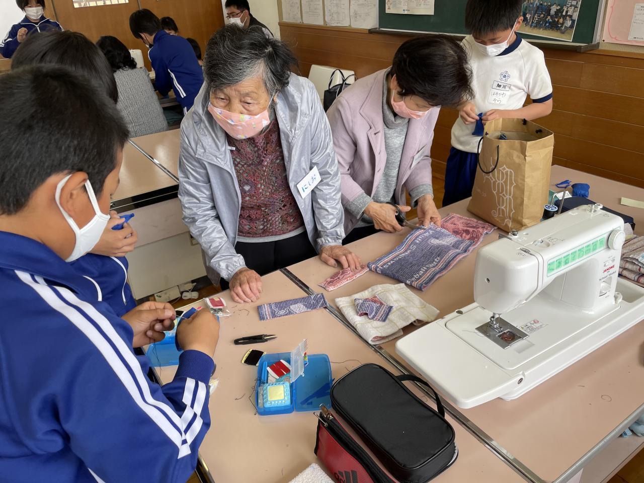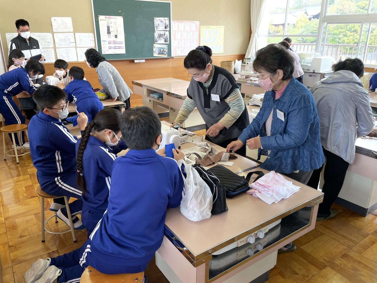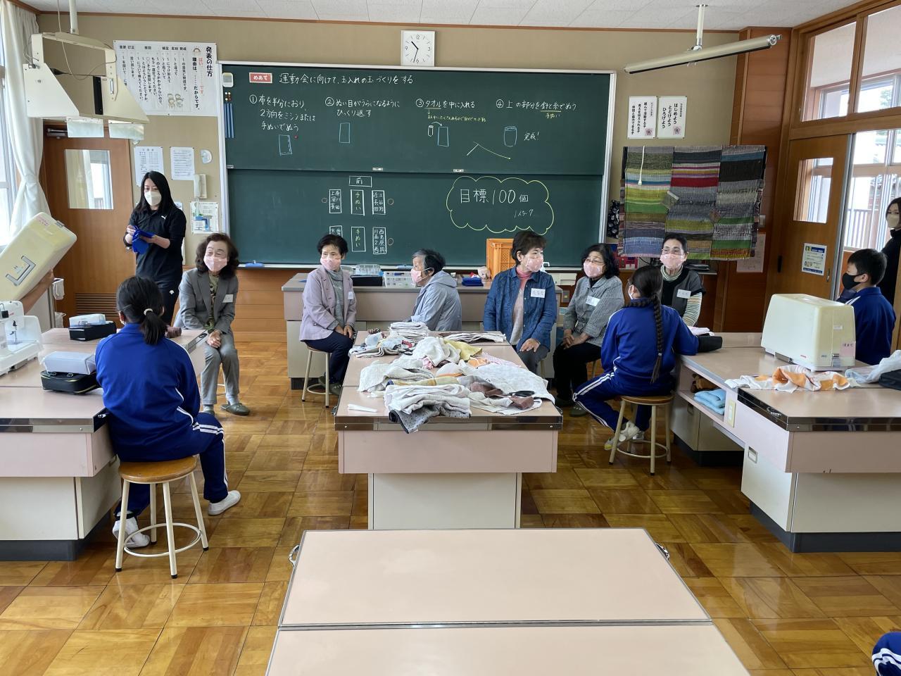 6年生が倭文市民交流センターで活動されている「夢クラブ」の6名(金輪さん、武田さん、柳田さん、西尾さん、棚田さん、大道さん)の協力のもと家庭の時間に体育会「玉入れ」で使用する「青玉」づくりに取り組みました。100個の玉を作ろうと事前に子供たちが目標をきめて青い布に古タオルや古着をつ詰め込んで夢クラブの皆さんの丁寧な指導のもと上手に「青玉」を見事に目標の100個以上作ることができました。夢クラブの皆様本日はありがとうございました。青玉は5月20日(土)9:00~開始する体育会で使用します。今年の運動会は午前中のみの開催になりますが今のところ保護者や地元の方の入場制限は特にしない予定でいますので時間にご都合のつく方はぜひご観覧してください。