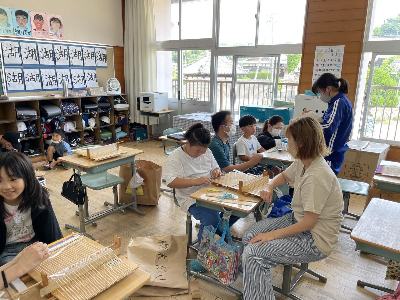 本日オープンスクール「親子しづおり体験」を実施しました。これまでは通常の授業参観を中心にしてオープンスクールを開催してきましたが、今回は倭文小学校の伝統行事である「しづおり活動」をテーマに実施しました。保護者の中には小学生の頃自ら作成した「織機」がまだ使用されていることに驚いたり、「しづおり」がとっても楽しい、やってみたかった等感想をお聞きしました。今年度は「しづおり活動」をイオンと連携して実施し、秋ごろには子どもたちが制作した「しづおり」の販売体験を予定しています。本日はお忙しい中多数の保護者の皆様方に参加していただきとても充実した「しづおり活動」が出来ましたた。オープンスクールへのご参加誠にありがとうございました重ねてお礼申し上げます