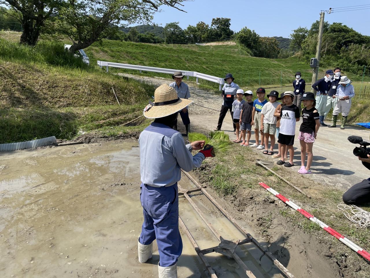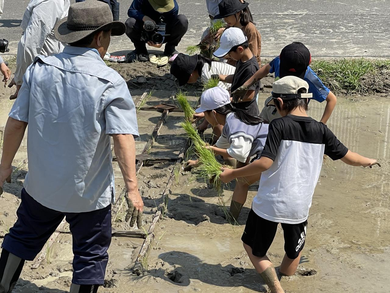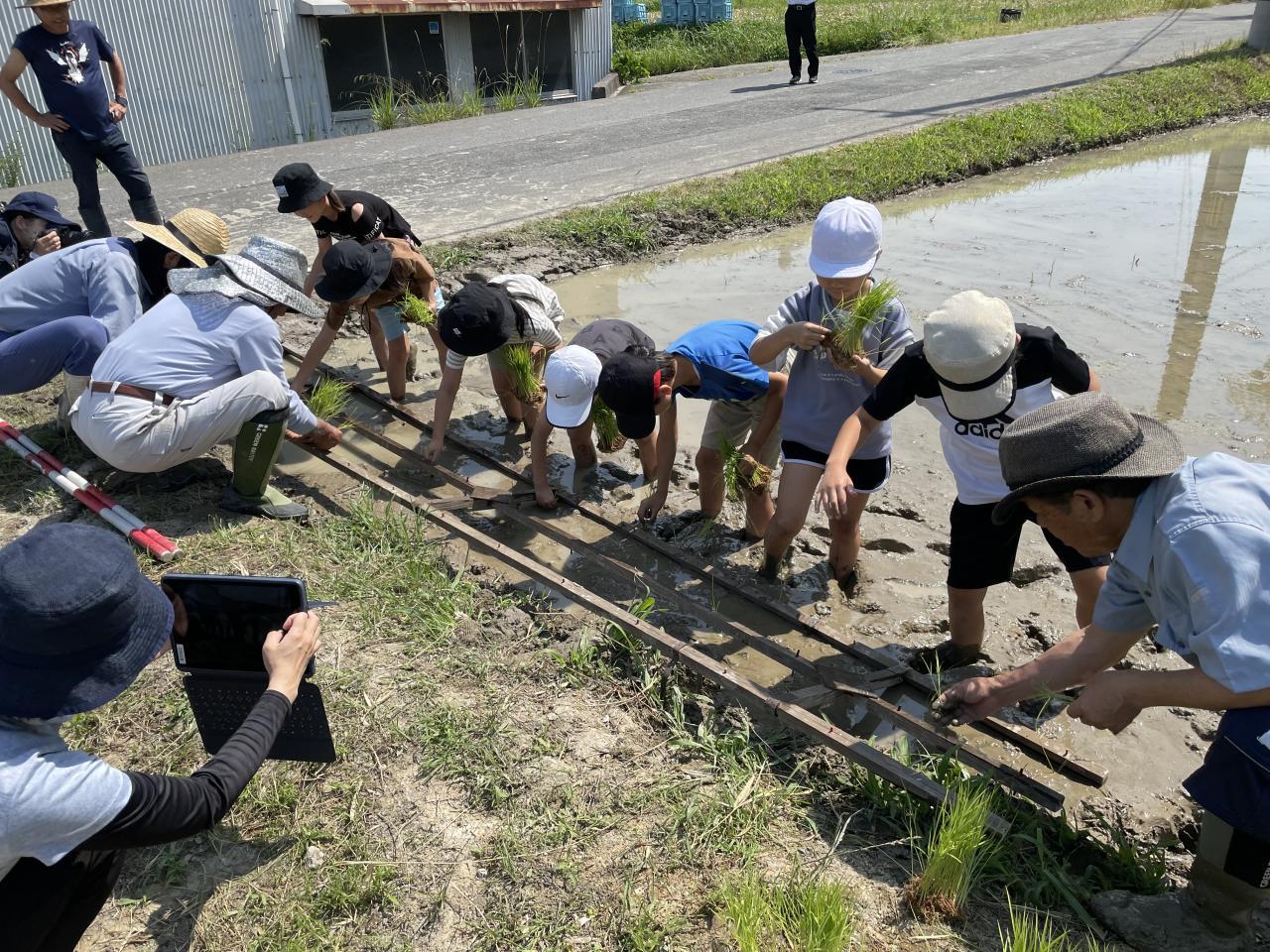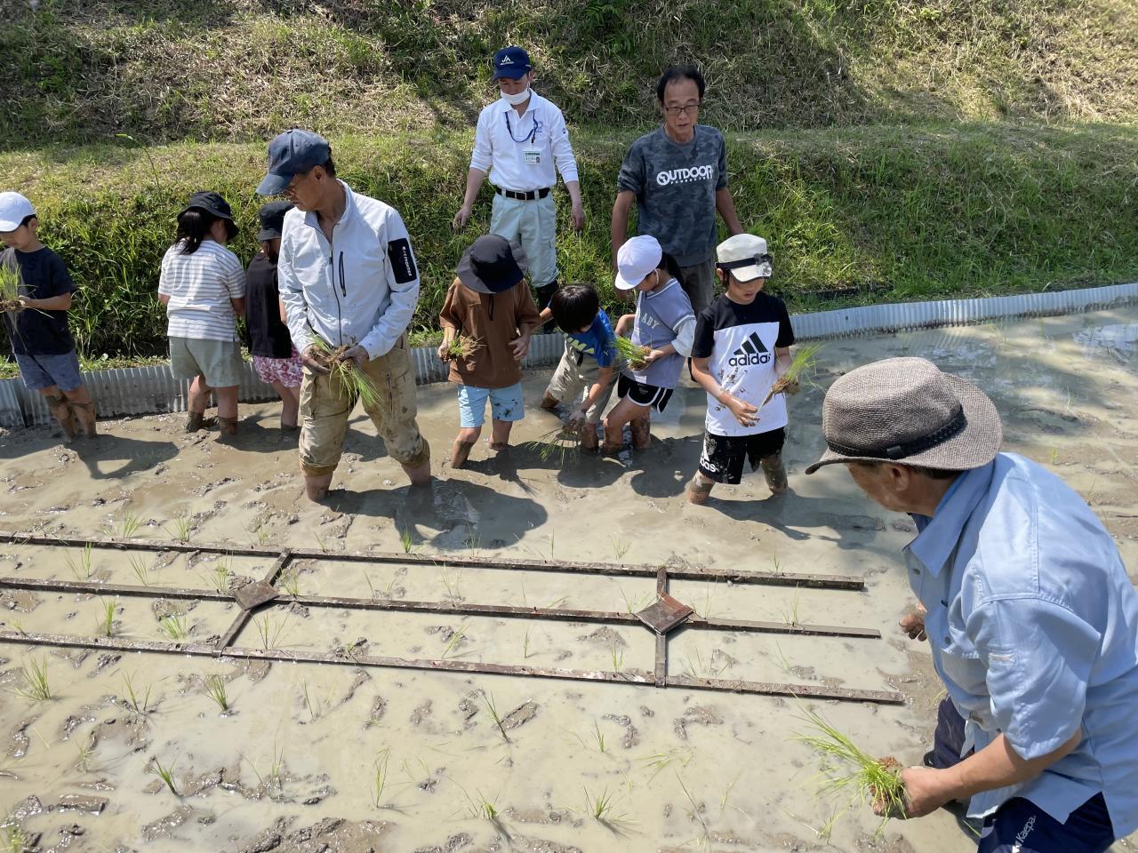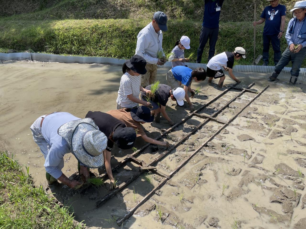 本日長田環境保全組合から協力いただき3年生が「田植え」を行いました。稲の苗の植え方について長田地区の皆様から丁寧な手ほどきをうけ「いざ田んぼへ」なかかな慣れない泥に悪戦苦闘しながら田植えがなんとか出来ました。秋には稲刈りです。本日植え付けた稲が順調に生育しますように。長田環境保全組合の皆様方本日はありがとうございました。