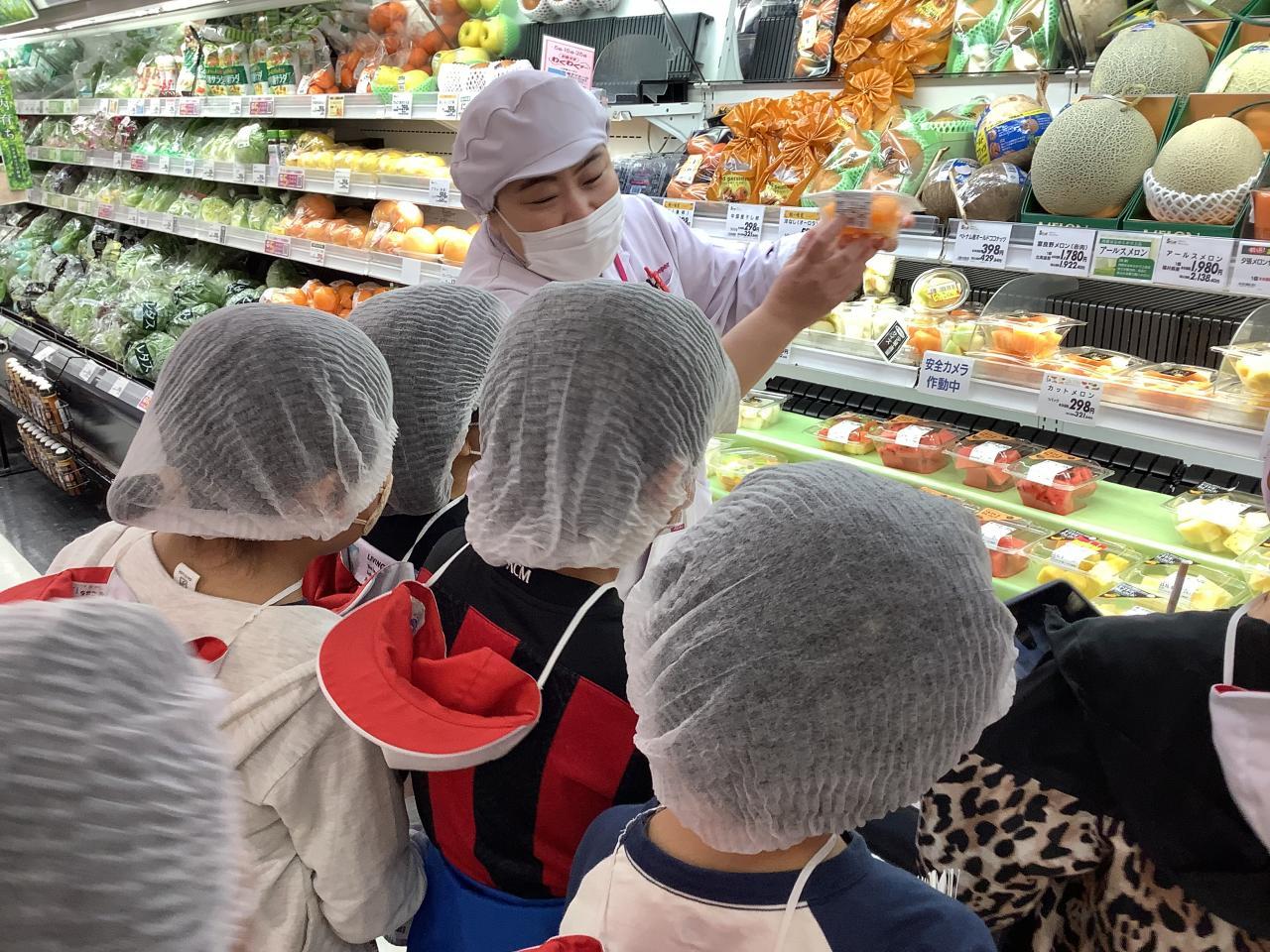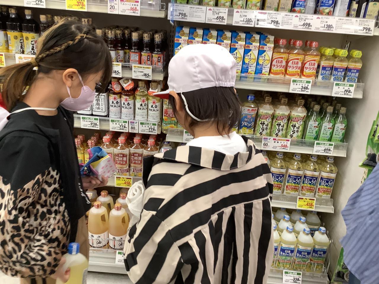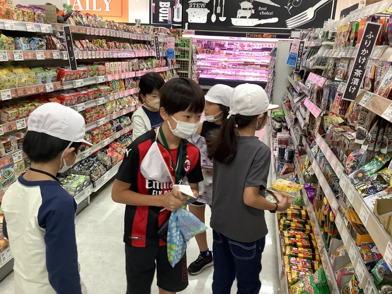 10月5日(木)3年生は校外学習でイオンへ行きました。はじめにイオンで働いている人たちが気をつけていることや、見学での約束を聞いて、イオンの中の見学に出発しました。普段は見ることのできないバックルームも案内していただき、商品として売り場に出すためにしている作業について教えてもらいました。売り場では、実際に商品を見ながら、商品につけられている表示の意味なども教えてもらいました。見学後、おうちの人から頼まれていたお買い物をしました。決められた予算の中で買うことができるよう計算しながら買っていました。学校ではできない体験がたくさんできた一日でした。