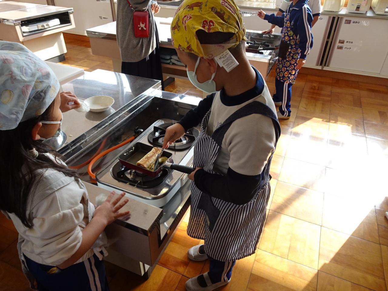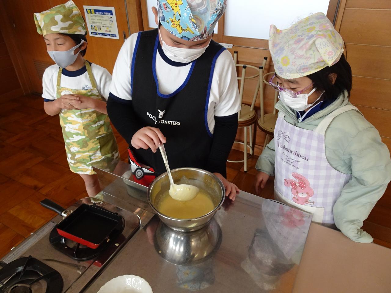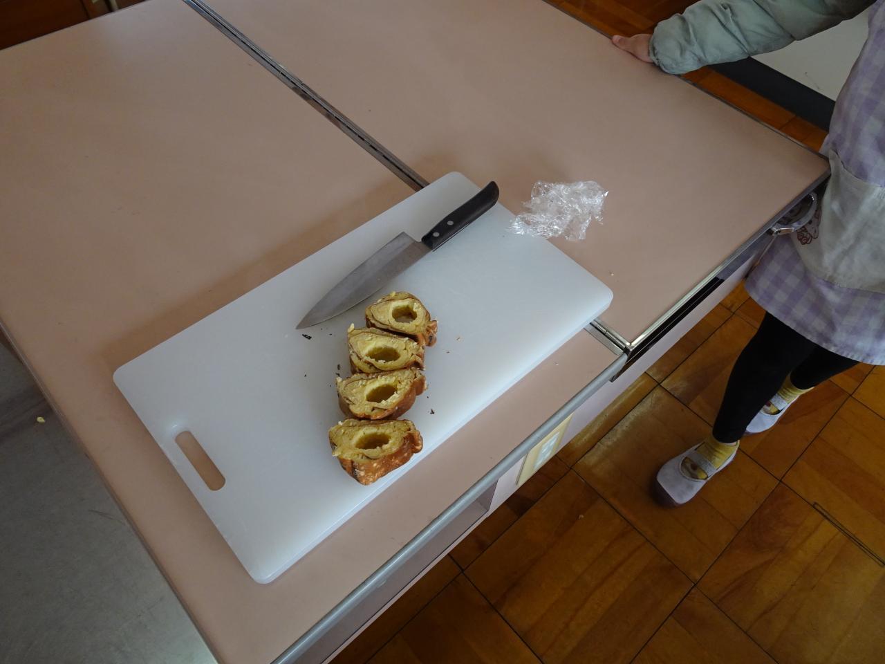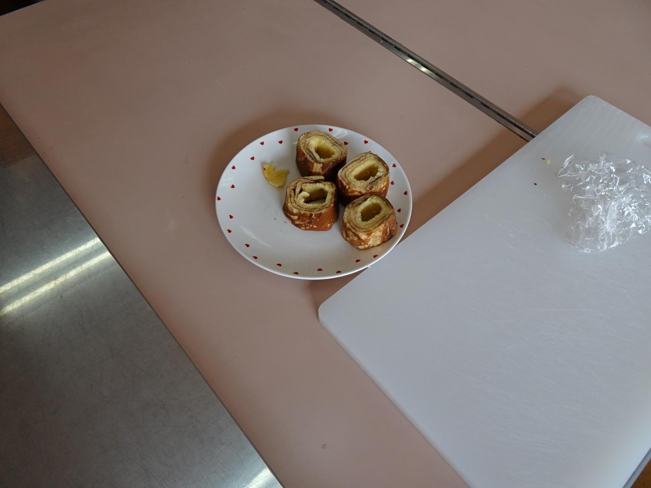 2年生が先日社会見学で訪れた「淡路島ばぁむ」においてバームクーヘンが調理されるところを見学してきました。本日社会見学で学んだ知識!?を生かしてバームクーヘン作りに挑戦しました。とってもいい香りが家庭科室内いっぱいに広がり美味しそうな個性的なバームクーヘンが出来上がりました。