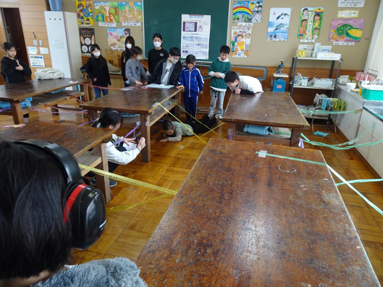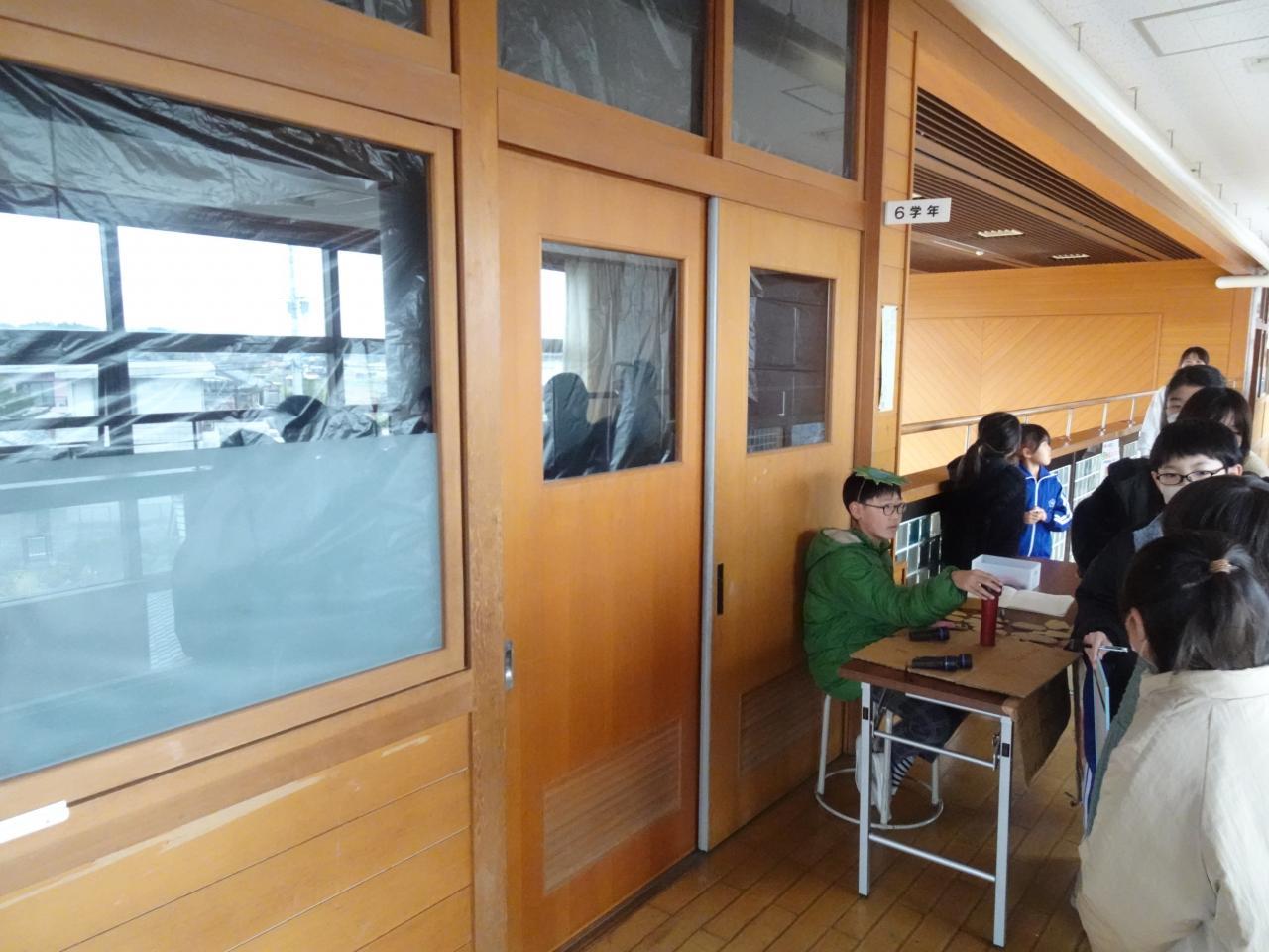 今年も昨年に引き続き、6年生が企画計画した「在校生を楽しませる会」を本日実施しました。在校生は3つの縦割り班にわかれて6年生が考えた「宝探し」「おばけやしき」「レーザーミッション」のアトラクションをゲーム形式で楽しみました。「宝探し」では慣れているはずの図書室内に隠されている宝物を必死に探していました。レーザーミッションでは、かがんだり床をはっていったりと忍者のようにミッションにチャレンジしていました。「おばけやしき」は、教室を真っ暗にして様々な工夫をこらした「おばけ」たちがたくさん登場し「キャー」など叫び声が響いていました。こんな感じで6年生が様々な準備や工夫を重ねたお陰で在校生を楽しませることができました。とっても楽しい企画6年生の皆さんありがとうございました。
