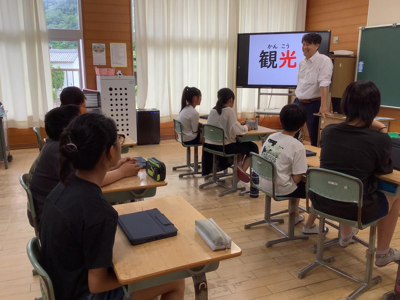 今日は地元食材の「はも」が給食に登場しました。「はも」も含めて南あわじ市の魅力を改めてみんなで探してみようということで、教育委員会から浜田先生、そして守本市長にもお越しいただき授業をしていただきました。淡路島にはたくさんの観光客が来ていること、自然やおいしい食べ物などの観光資源がたくさんあることなどを改めてみんなで確認。豊かな観光資源をどのように発信し、さらに発展をさせていくかなど、これからの南あわじ市のことについて考えることができました。授業の後、一緒に給食をいただき、とても貴重な時間を過ごすことができました。