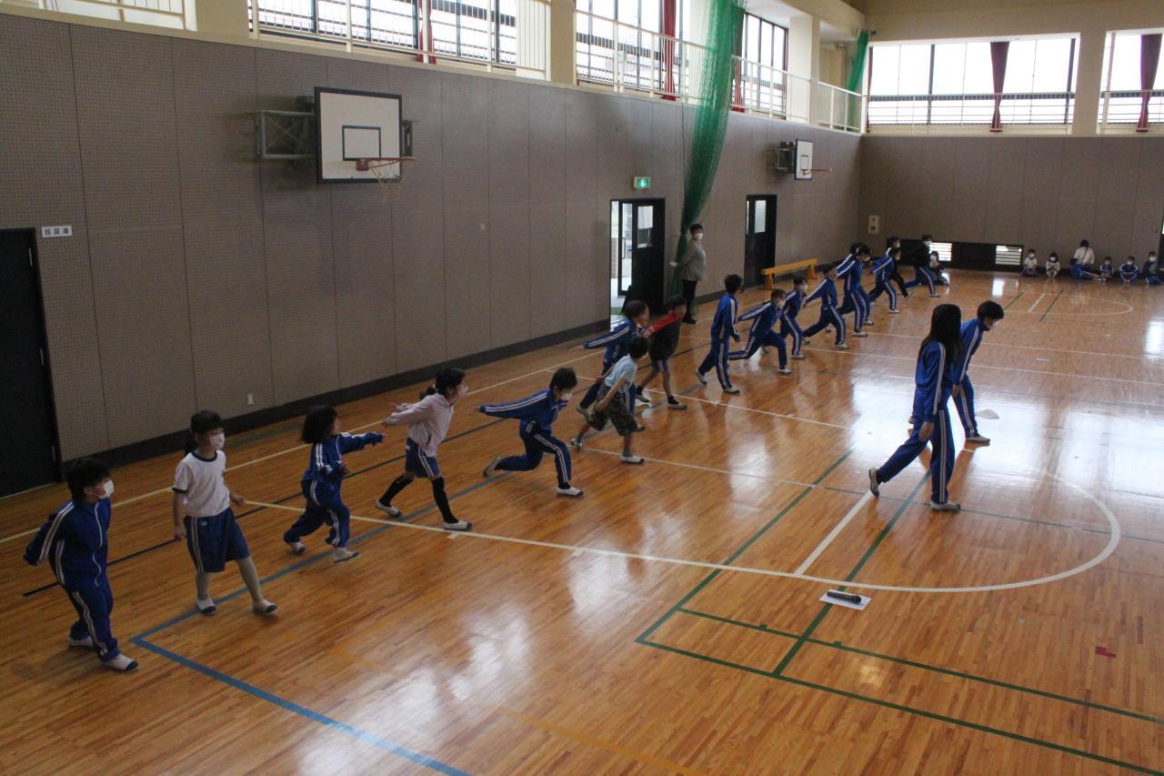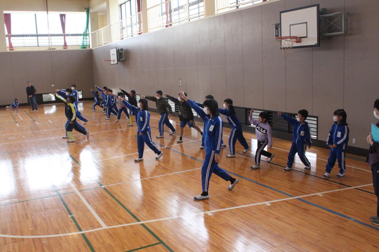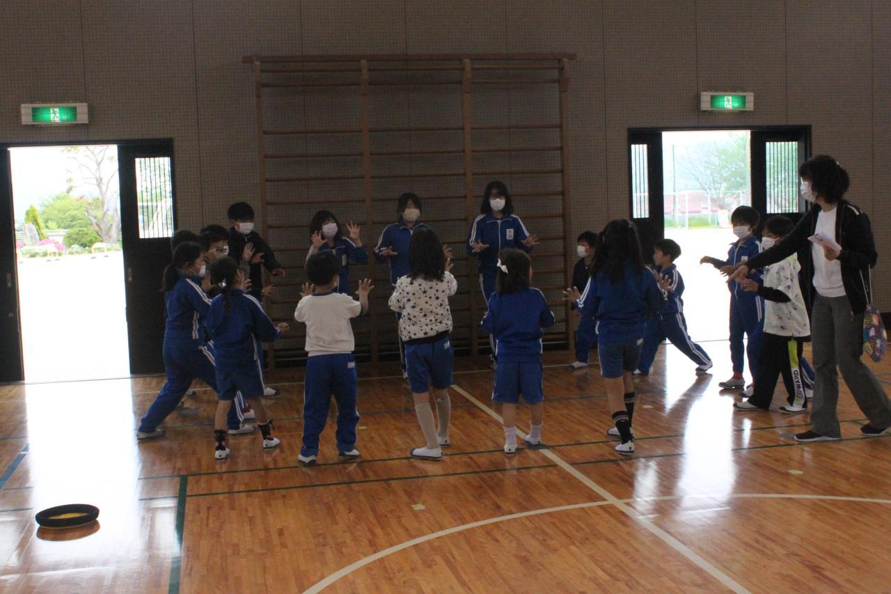 ふれあい活動 4月24日(月)縦割り班で「勝利のポーズ」を考えました。練習をして体育会で披露します。