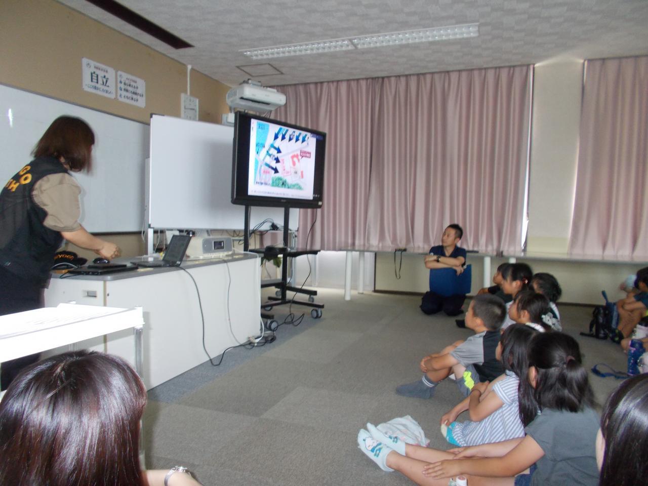 7月8日(火)EARTH隊員の福良小学校の田村先生に来ていただき、「明日に備える」として災害に備え自分の命を守る、おうちの人の命を守る学習を受けました。今年度の市の防災ジュニア講座の初級者コースの始まりです。