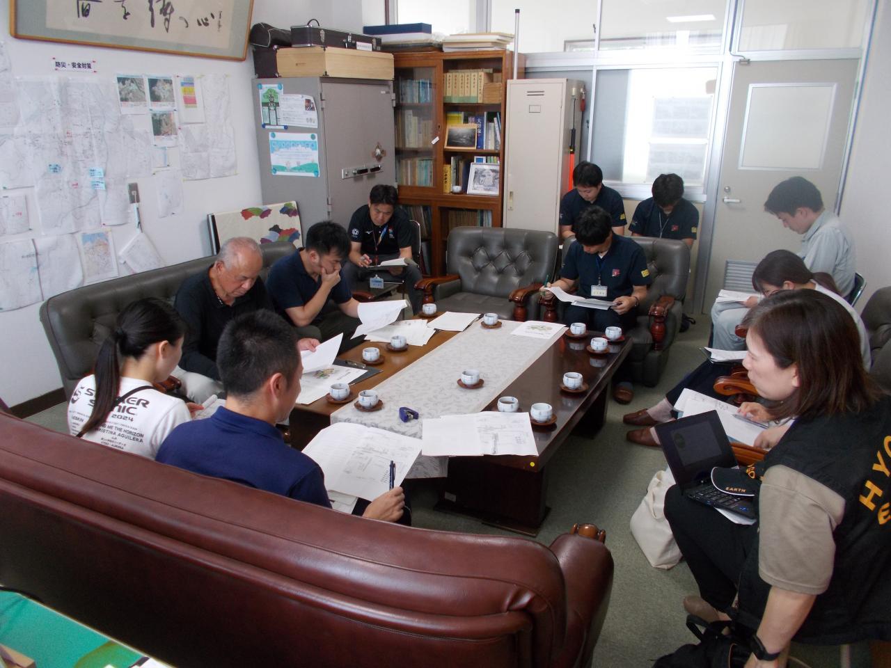 災害時、湊小学校は拠点避難所となります。15:30から部会を学校、行政、自治会とで開きました。13人もの方で学校の避難物資の確認をしたり、避難所運営についてマニュアルをもとに協議しました。