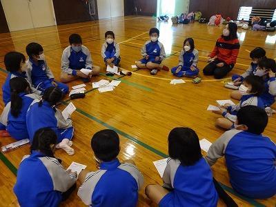 ②縦割り班グループで協力しながら活動することを通して、お互いの親睦を深める。
